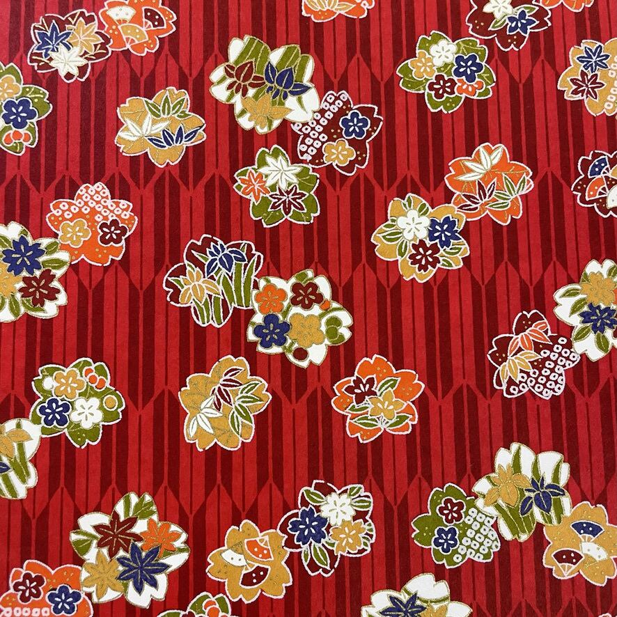華やかな友禅和紙 矢絣に桜型 季節の花々 赤 紫 大判 菊判 約63x93c