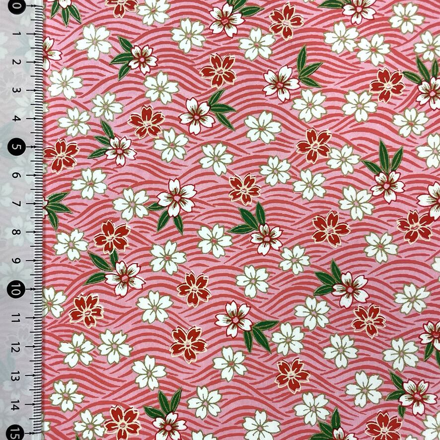 可愛い 友禅和紙 波に桜ちらし 桃色 ピンク 大判 約63x93cm Yuzen Dyeing