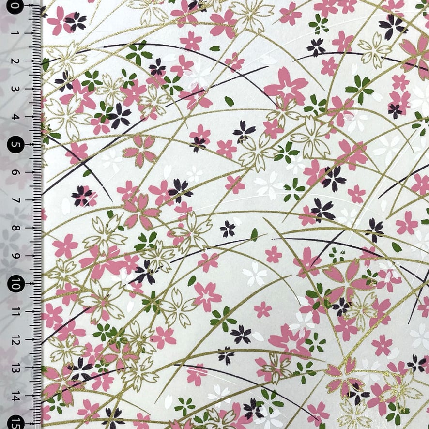さわやか 友禅和紙 白地に桃色の桜ちらし 金の露芝 菊判 大判 約63x93cm