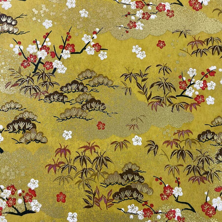 友禅和紙 華やか 金茶に金雲 松竹梅 上品 大判 菊判 約63x93cm