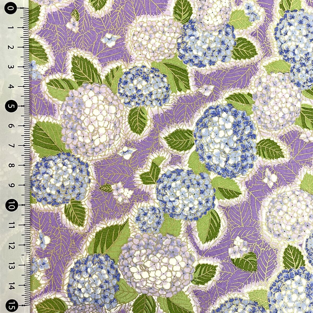 友禅和紙 さわやか 紫陽花 アジサイ 藤色地 大判 菊判 約63x93cm