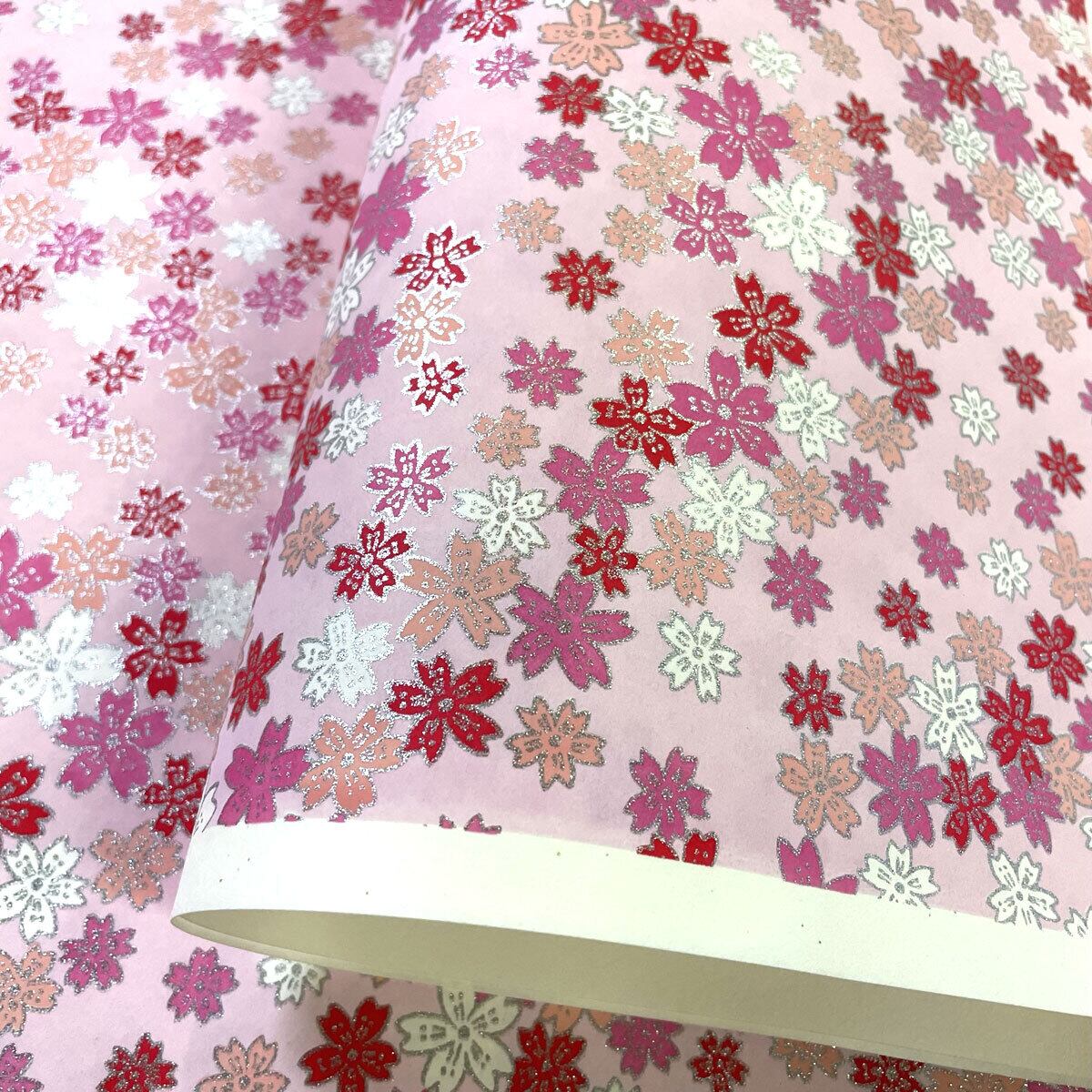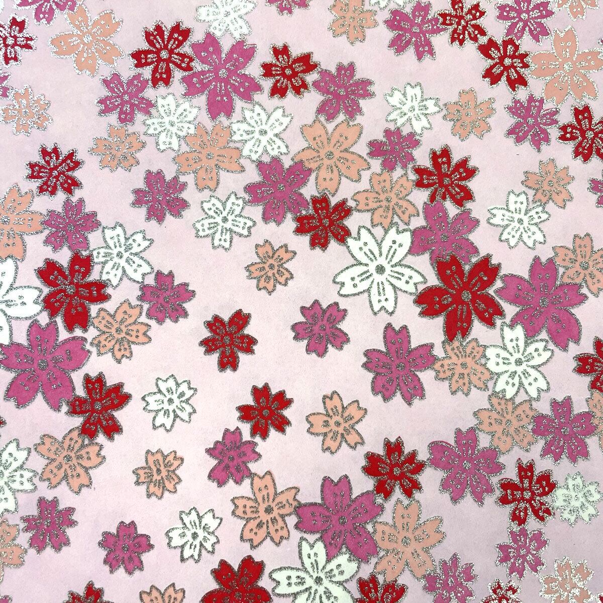 友禅和紙 可愛い桜 ピンク 銀の縁取り 大判 菊判 約63x93cm 千代紙