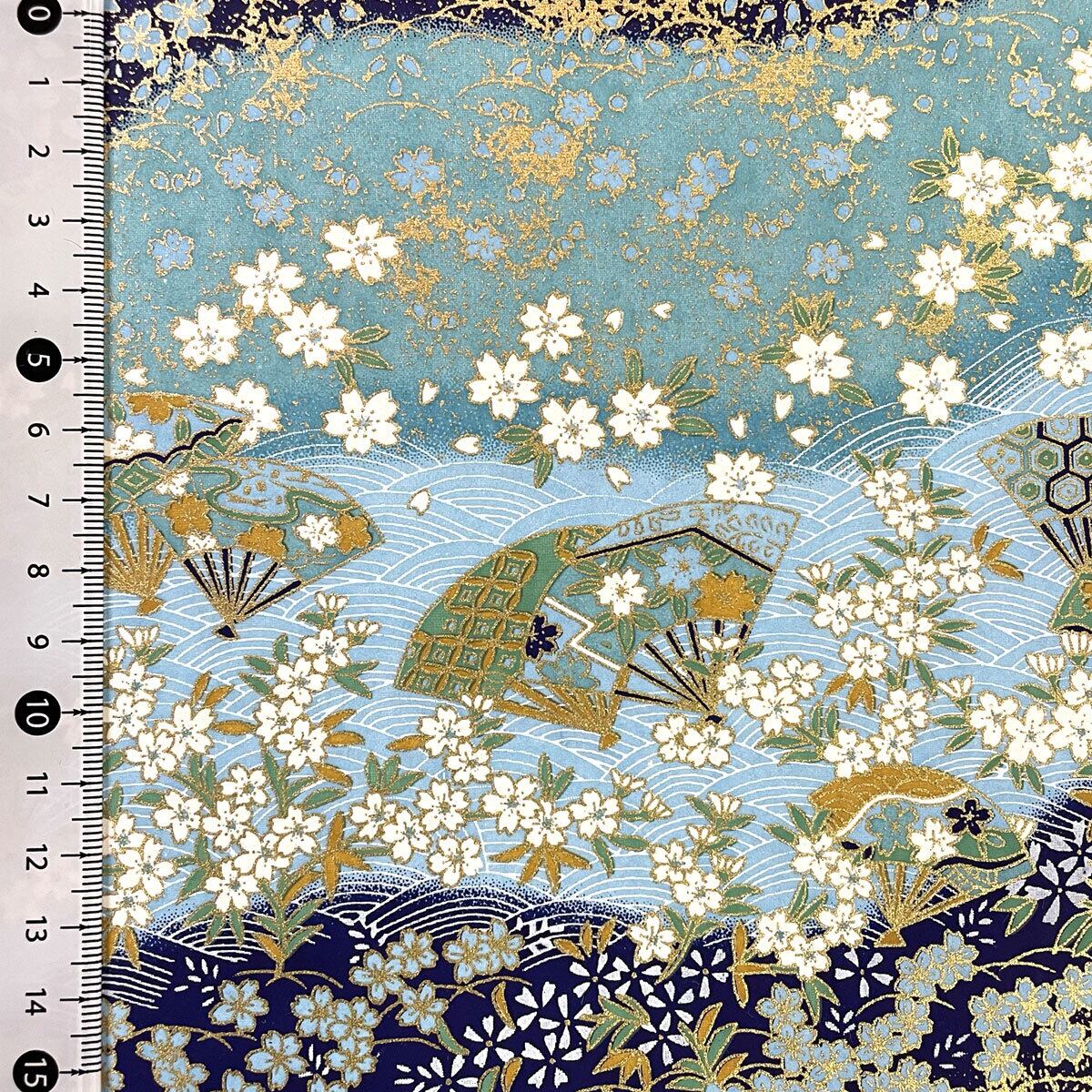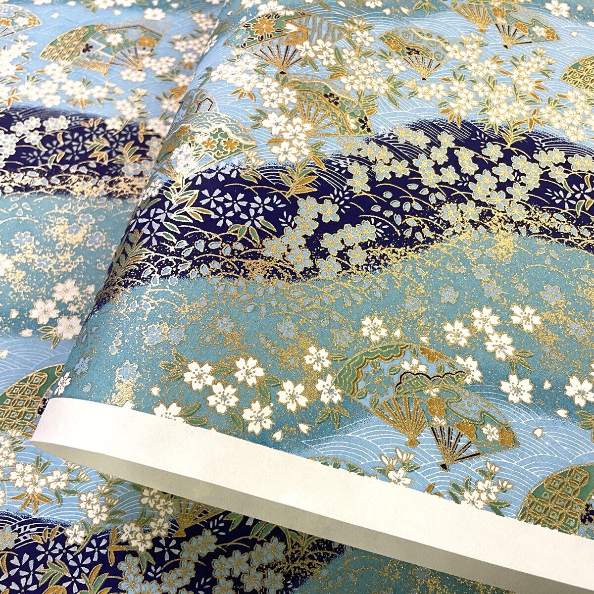 友禅和紙 華やか 扇と波 小桜 赤 青 緑 菊判 大判 約63x93cm