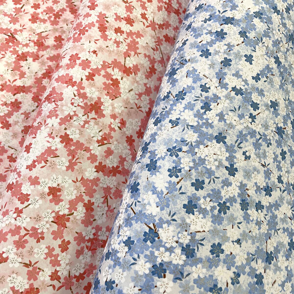 友禅和紙 可愛い 桜ちらし 小桜 桃色 水色 青 大判 約63x93cm 千代紙 Yuzen Dyeing