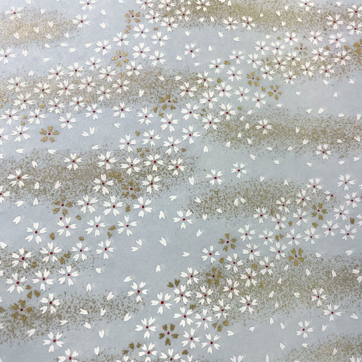 友禅和紙 薄水色に金雲 小桜ちらし 上品 大判 菊判 約63x93cm 千代紙