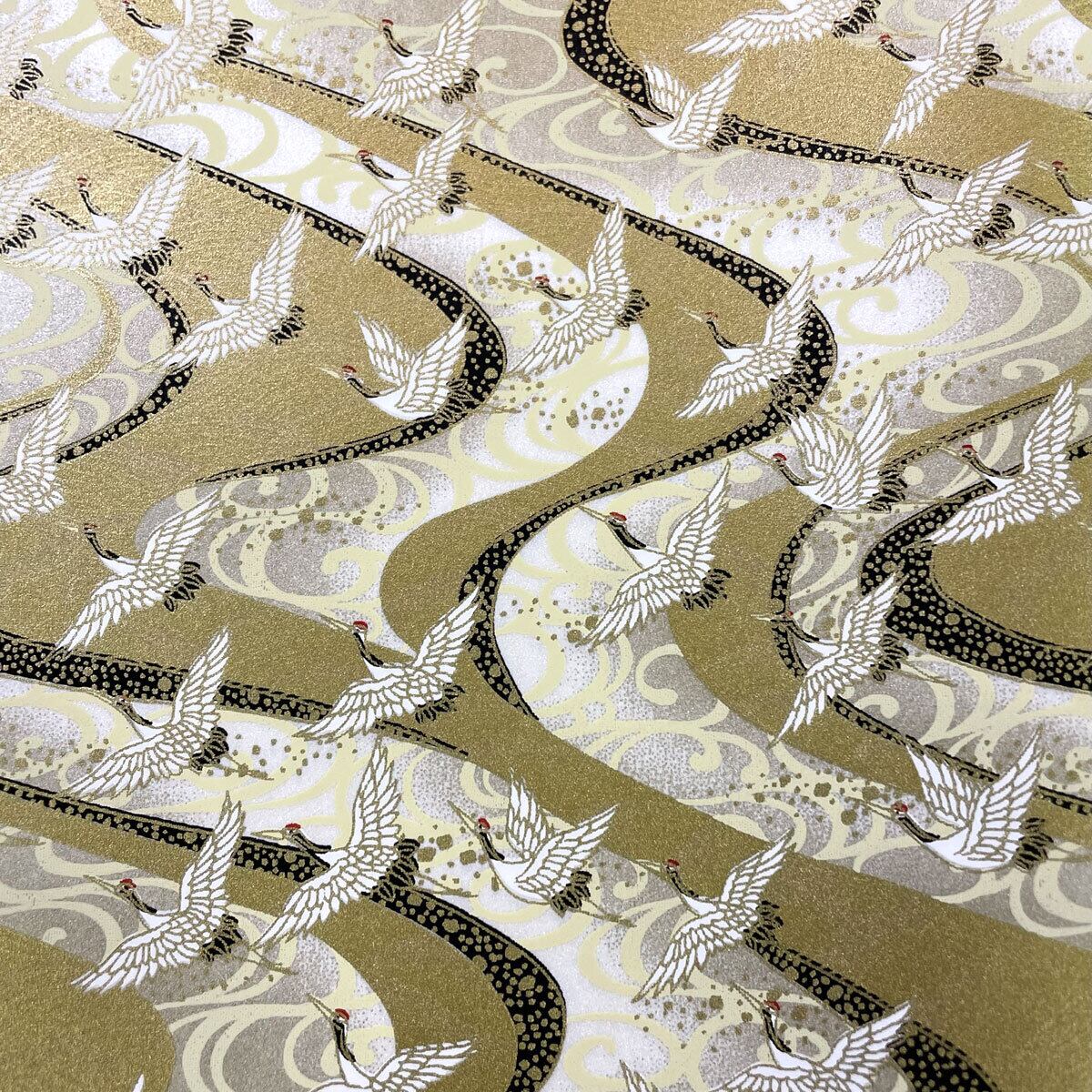 華やかな友禅紙 豪華 飛び立つ鶴と波 金系 菊判 大判 約63x95㎝