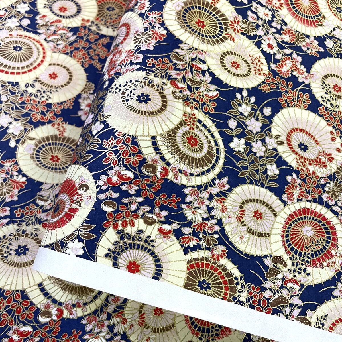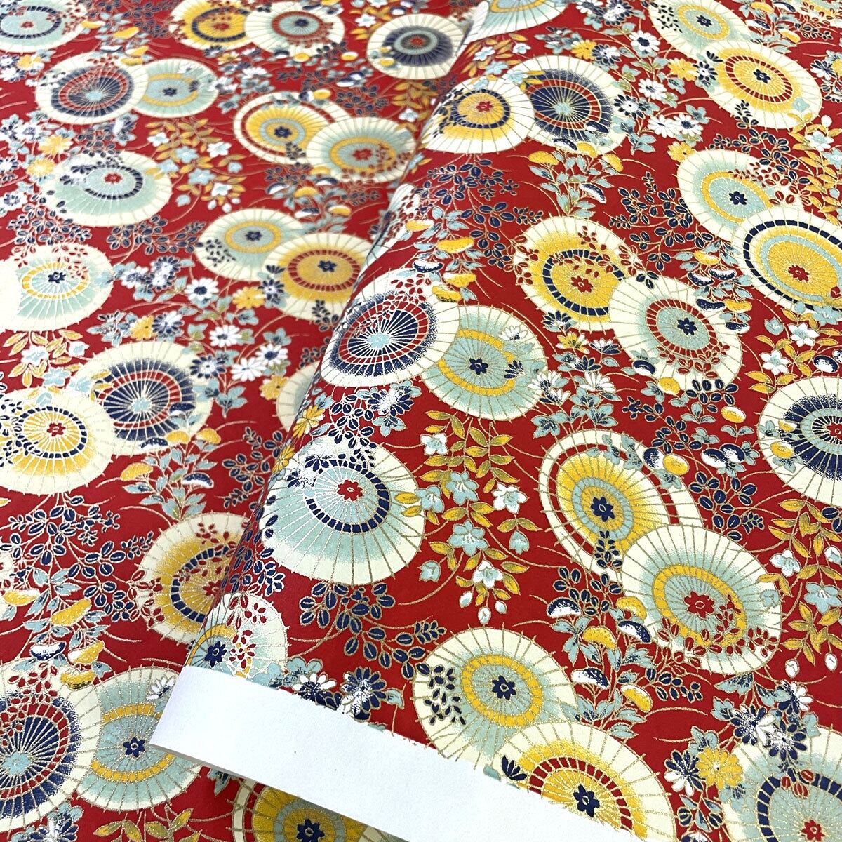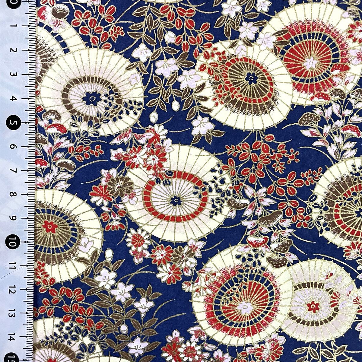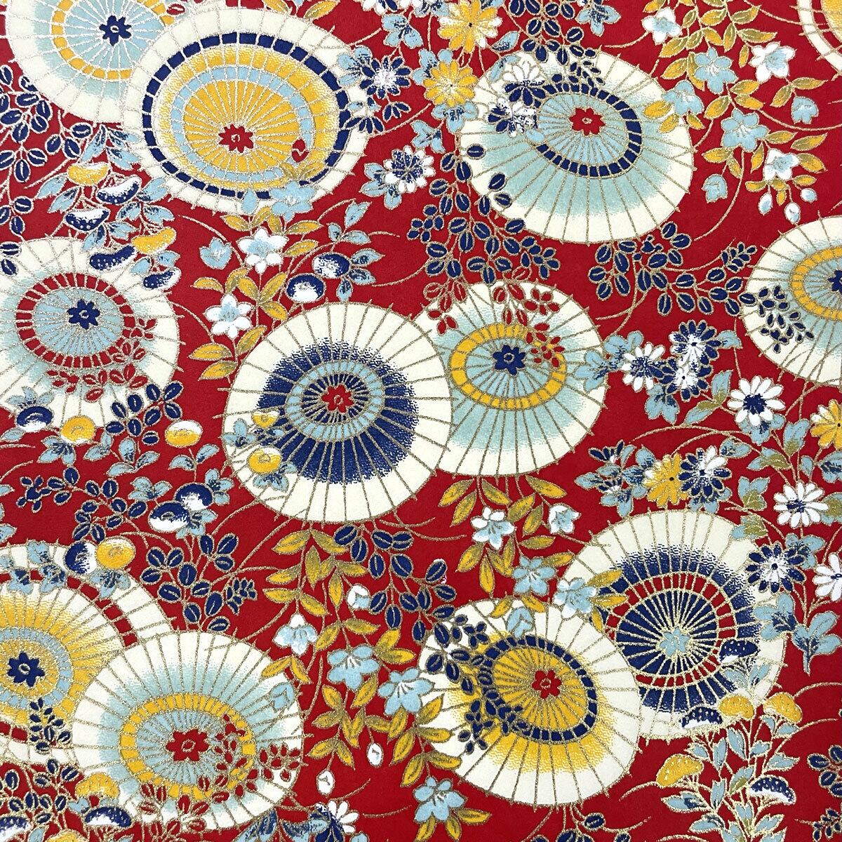 友禅和紙 華やか 和傘に秋の草花 青 紺 赤 菊判 大判 約63x93cm 千代紙 YUZEN dyeing