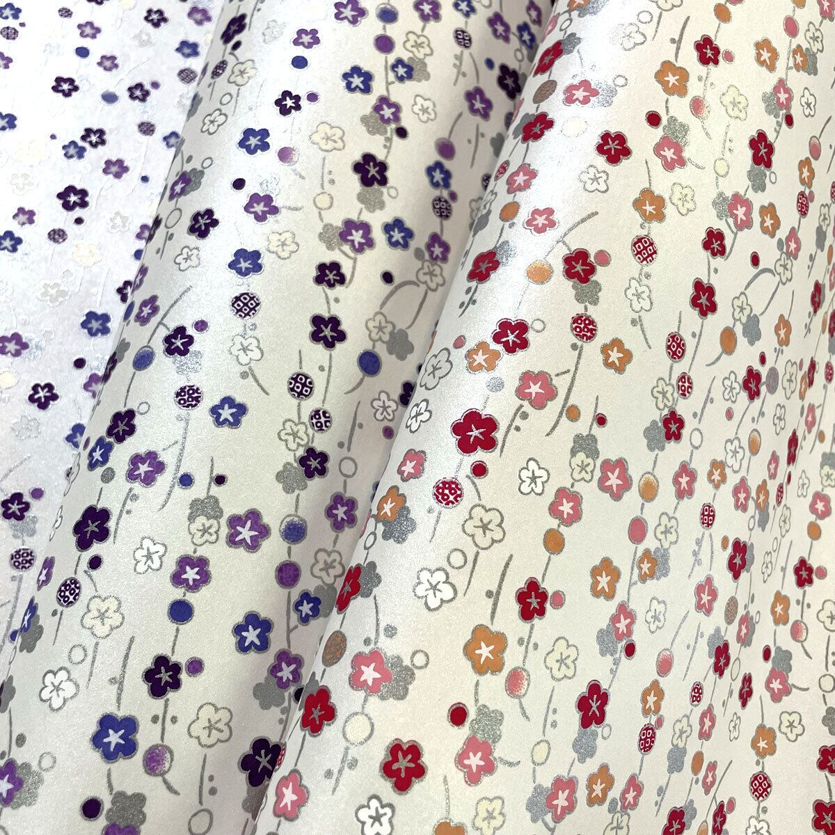 華やかな友禅紙 パール地にかわいい梅 つるし飾り風 しだれ梅 赤 ピンク 紫 青 大判 菊判 約63x93cm YUZEN dyeing