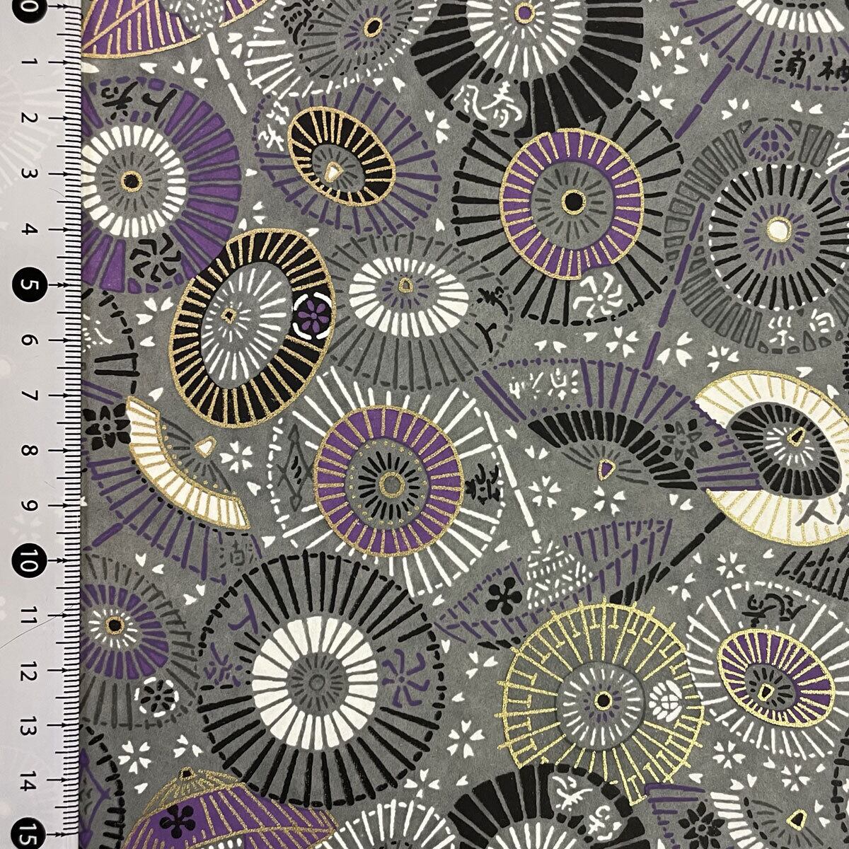華やかな友禅紙 YUZEN dyeing 小粋な和傘 黒 大判 菊判 約63x93cm