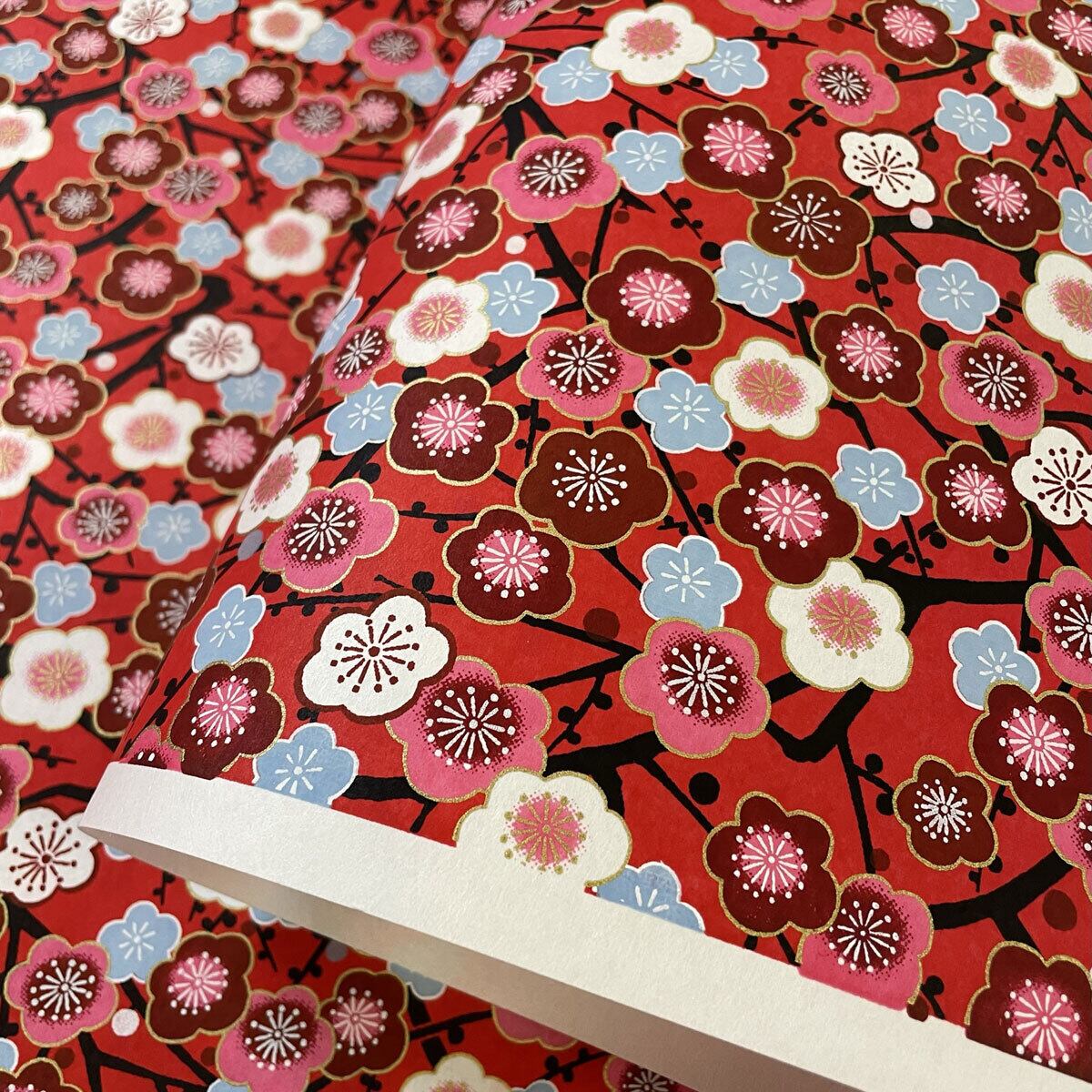 華やかな友禅紙 レトロモダン 紅白梅 赤地 おしゃれ 大判 菊判 約63x93cm YUZEN dyeing