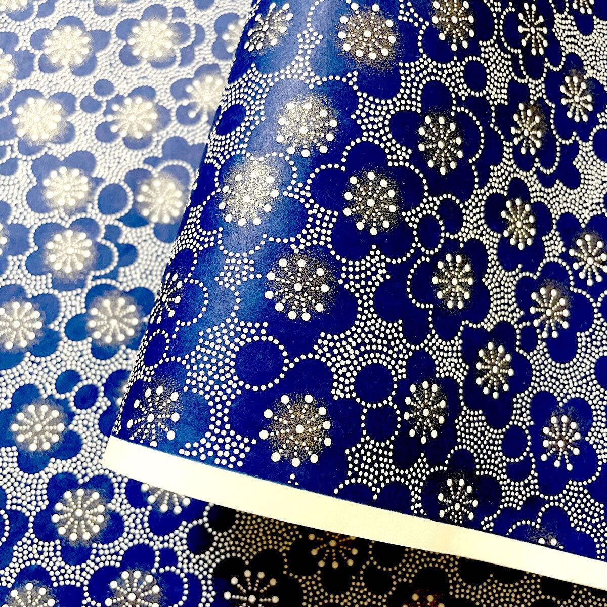華やかな友禅紙 ドットで梅の花 紺色 青 おしゃれ 大判 菊判 約63x93cm YUZEN dyeing