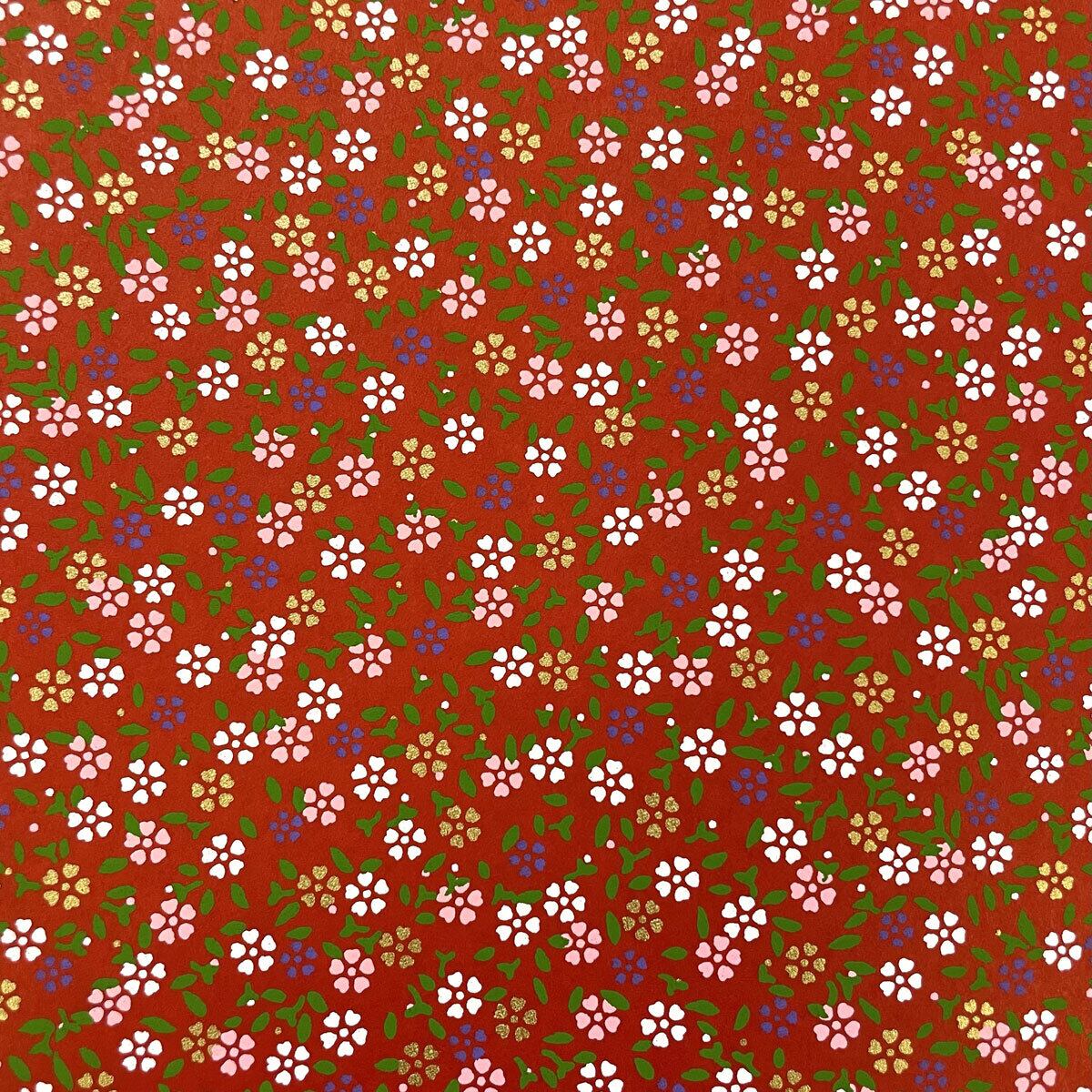 華やかな友禅紙 赤地に可愛い小花ちらし 菊判 大判 約63x95㎝ Yuzen Dyeing