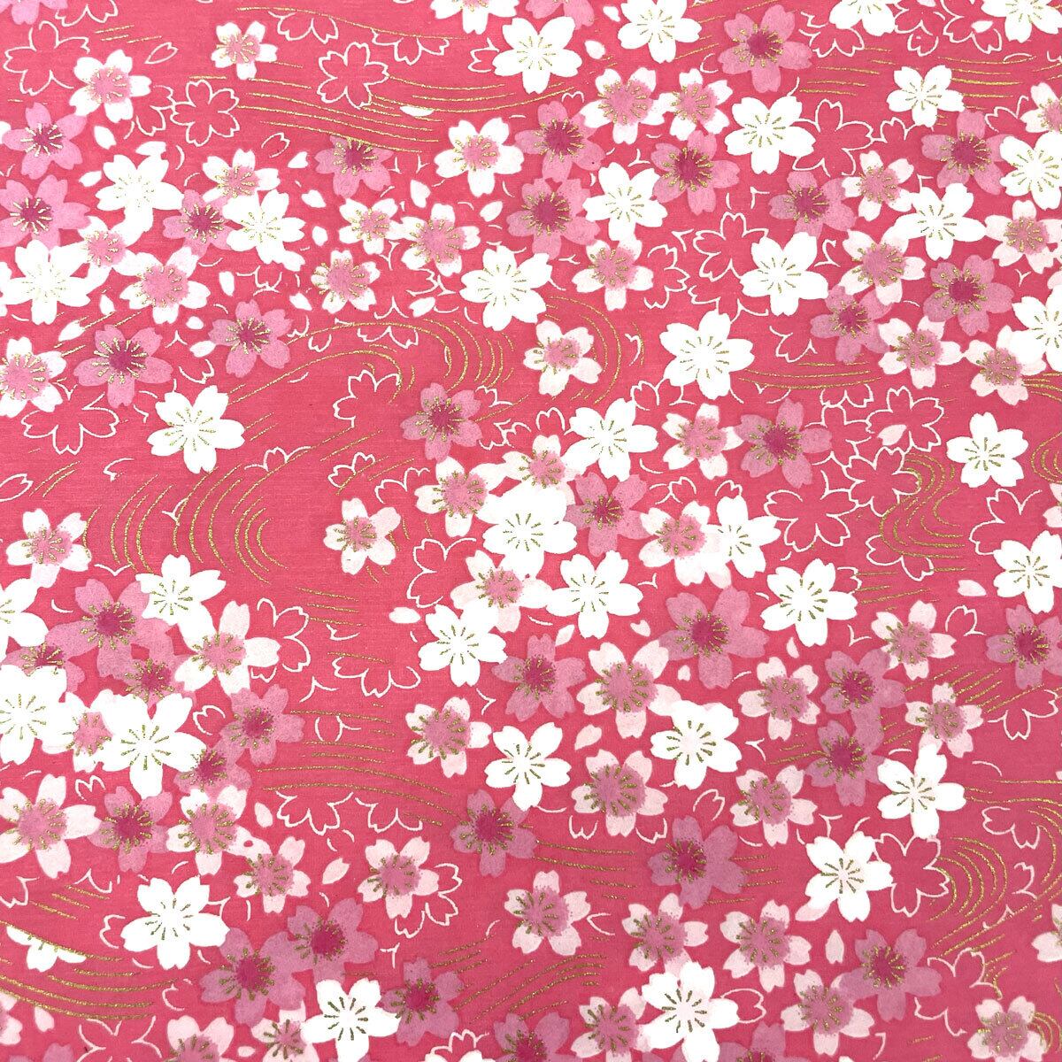華やかな友禅和紙 濃い桃色地に桜 金の波 ローズピンク 可愛い 大判 菊判 約63x93cm 千代紙 YUZEN dyeing