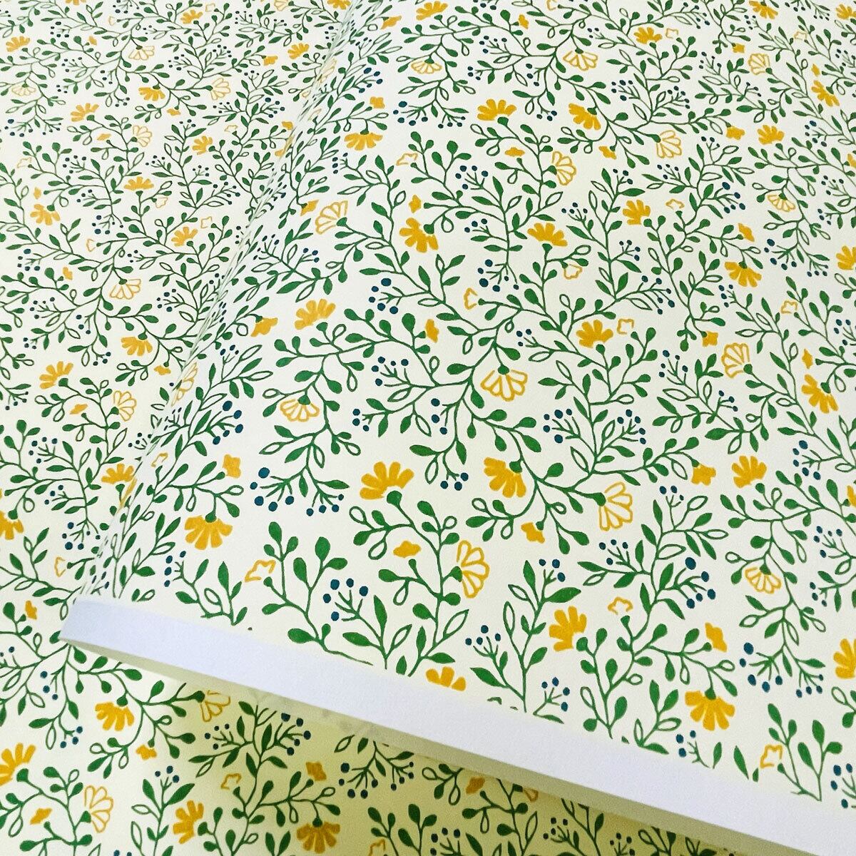 北欧風 友禅紙 YUZEN dyeing 可愛らしい 草花 黄色 ピンク 大判 約63x95㎝ 74956390