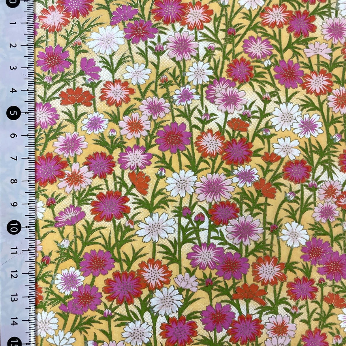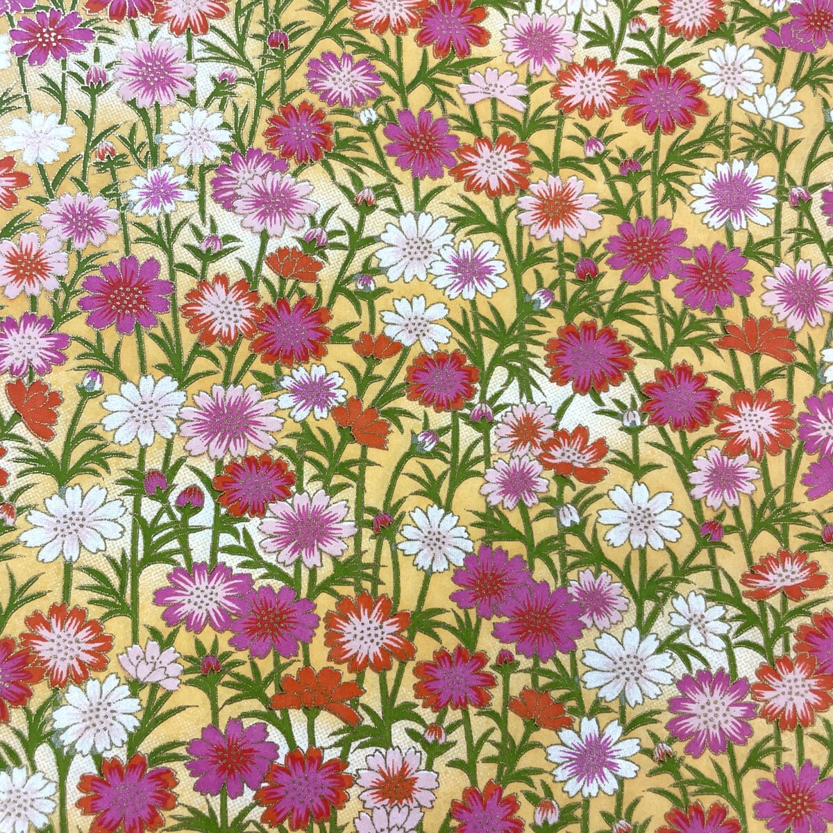 友禅紙 春のマーガレット 可愛い 橙色 オレンジ 青 ブルー 大判 菊判 約63x93cm YUZEN dyeing