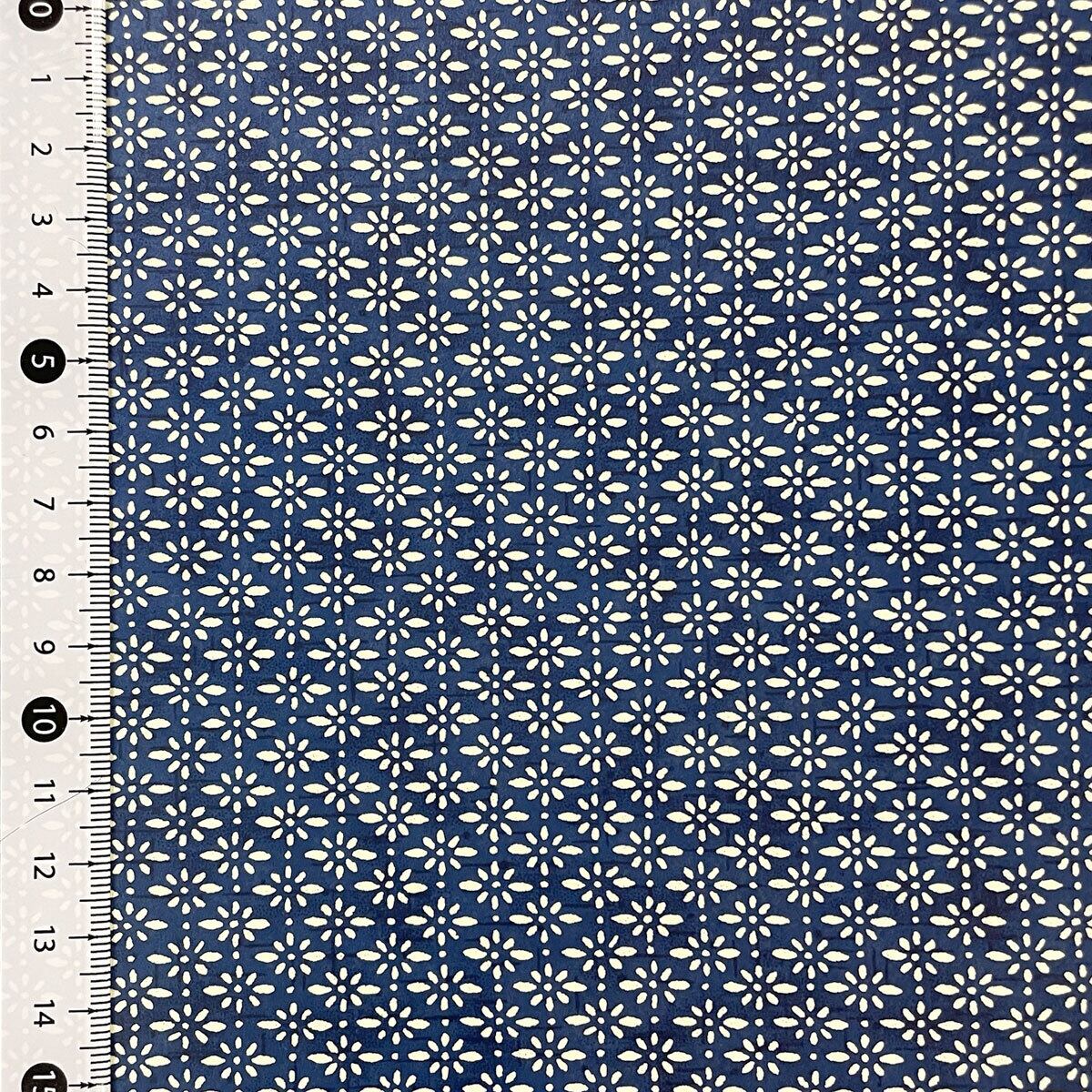 民芸風 加賀友禅 和紙 新小紋 紺 白の小花 刺し子風 大判 約63x93cm