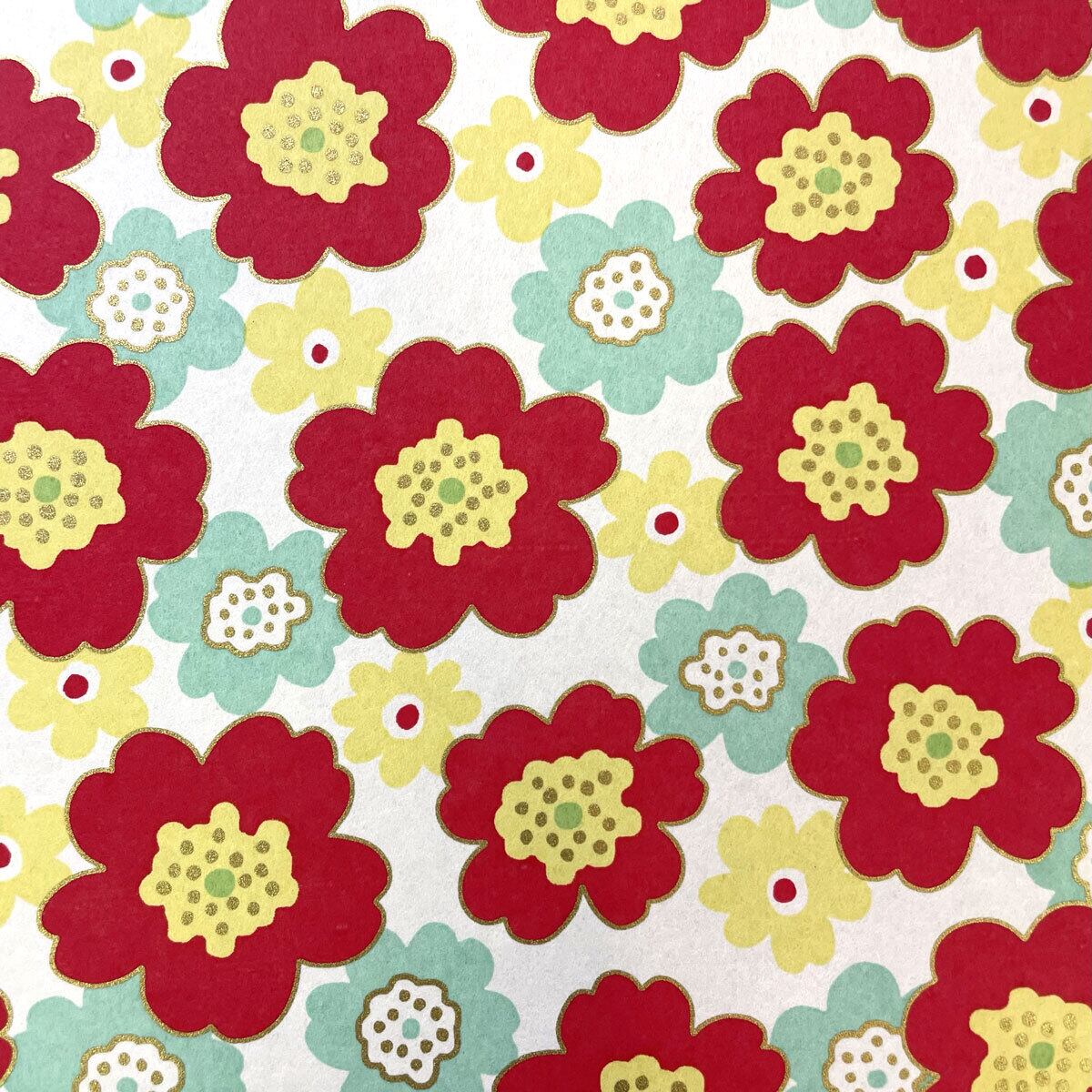 北欧風 友禅紙 YUZEN dyeing デイジー 花柄 赤 黄 約63x95㎝