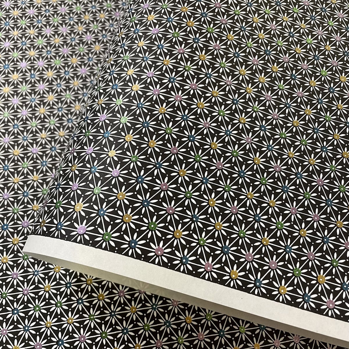 友禅紙 キラキラ花芯の連続小花模様 かわいい 黒地 菊判 大判 約63x95㎝ YUZEN dyeing