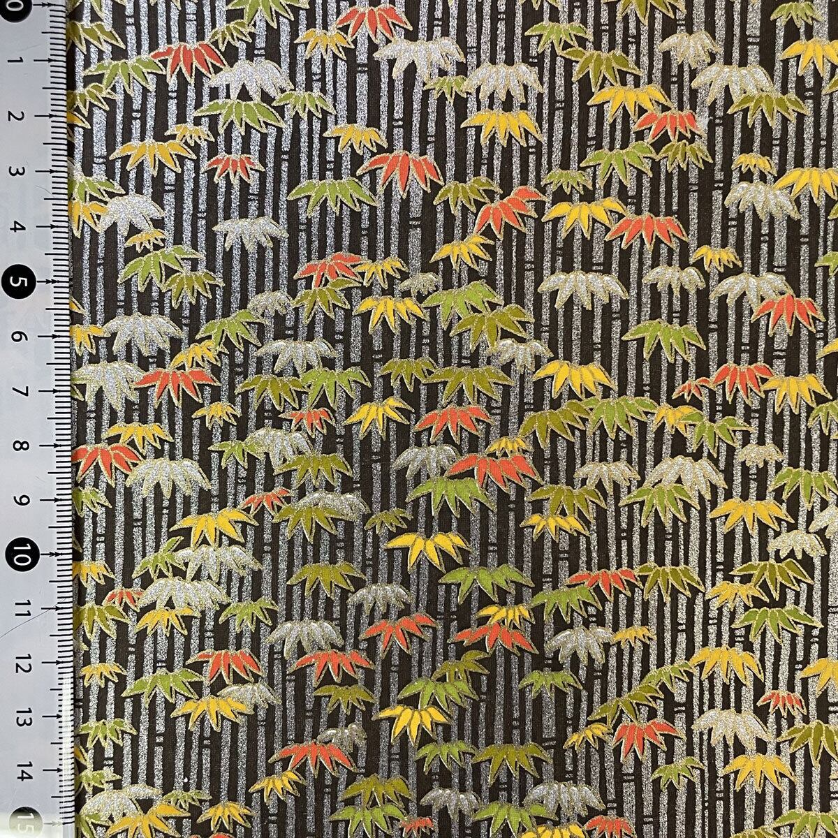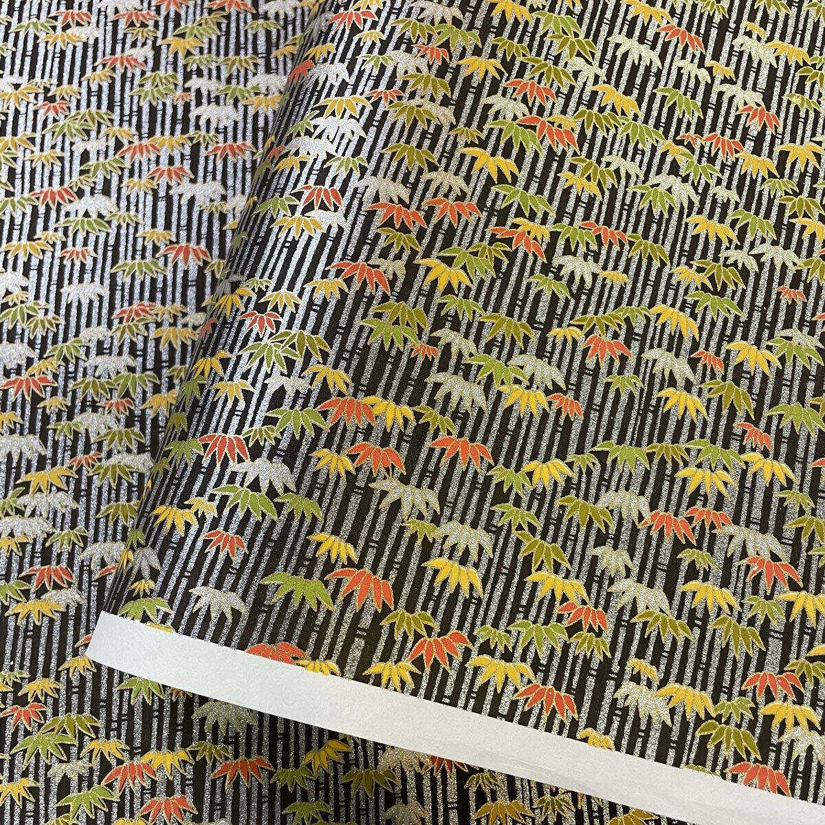 友禅和紙 華やか 竹林 笹の葉 黒 シルバー 菊判 大判 約63x93cm 千代紙 YUZEN dyeing
