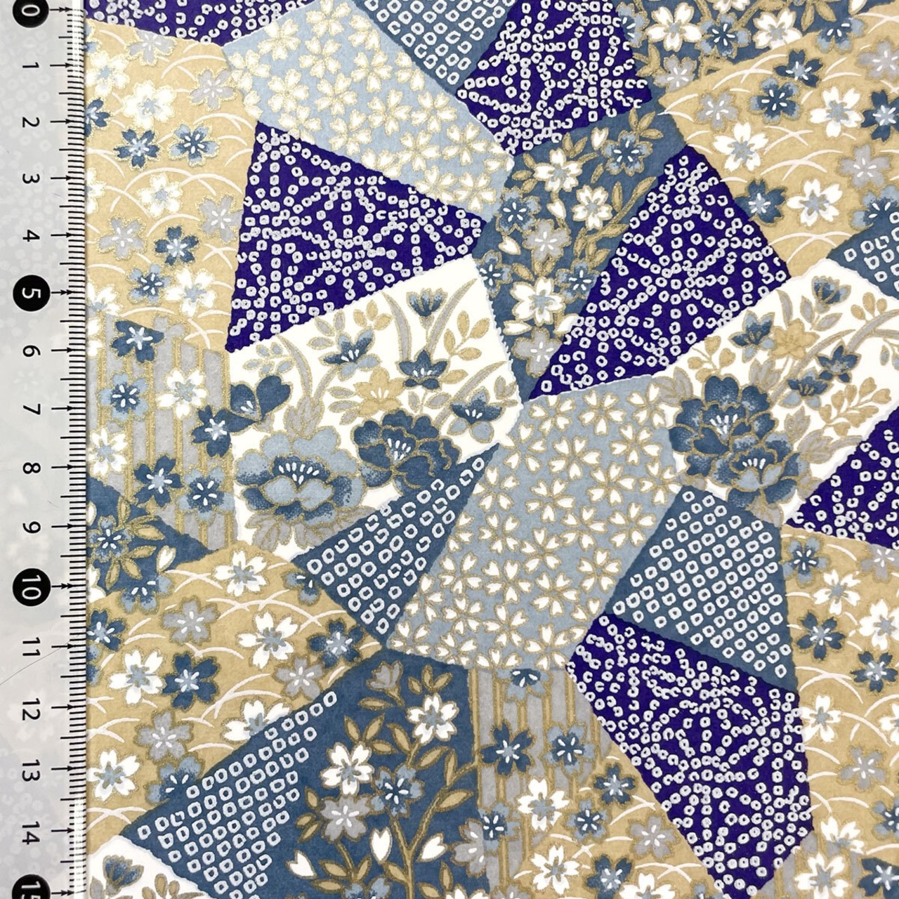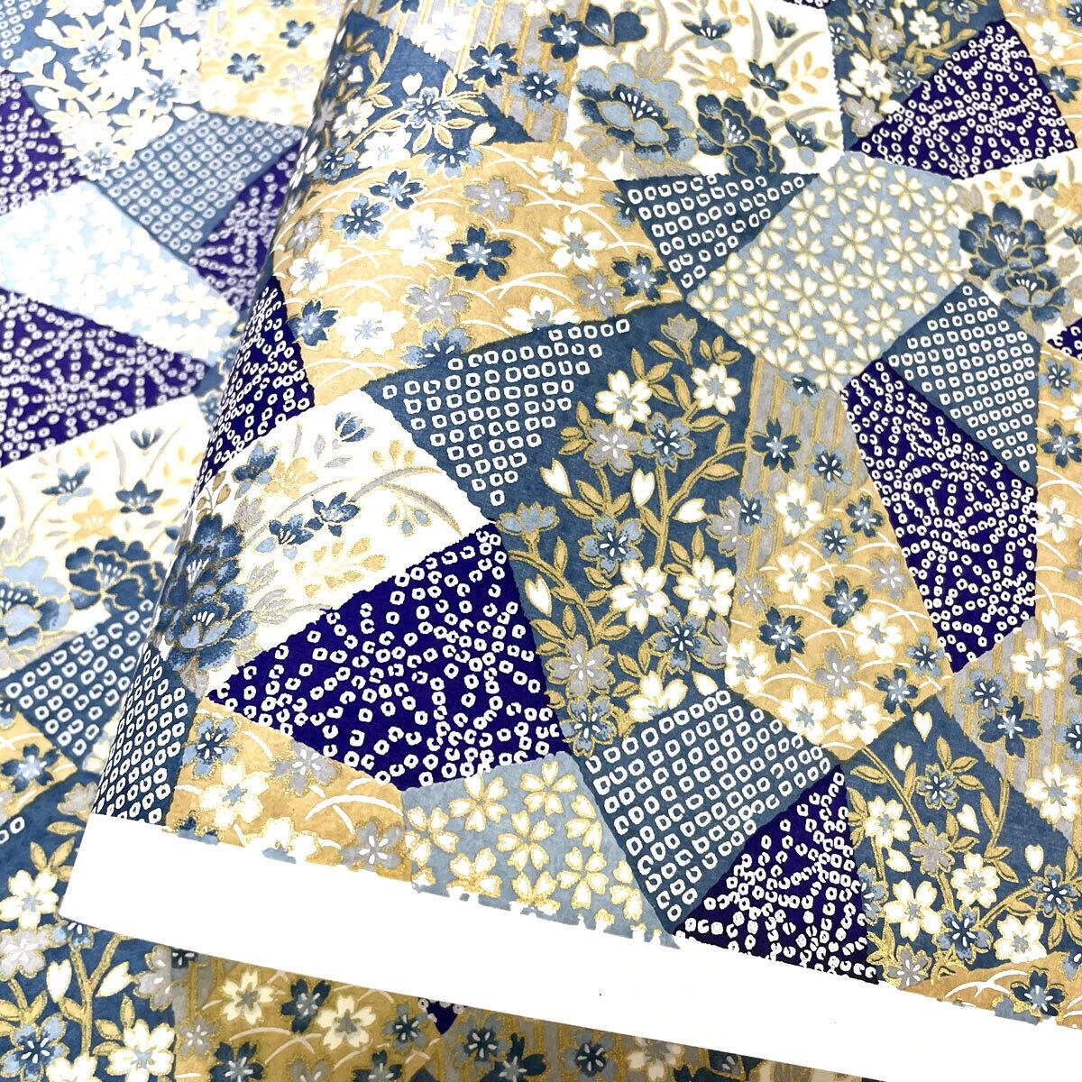華やかな友禅紙 YUZEN dyeing 鹿の子と絞り 花のコラージュ パッチワーク風 ブルー系