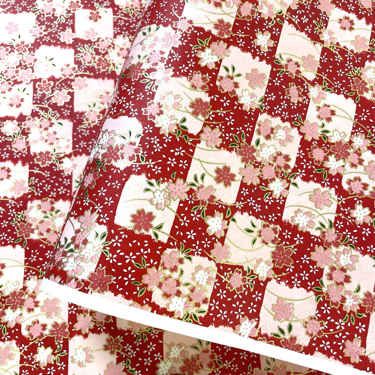華やかな友禅和紙 市松風 赤とピンクに桜と露芝 大判 菊判 約63x93cm 76279537