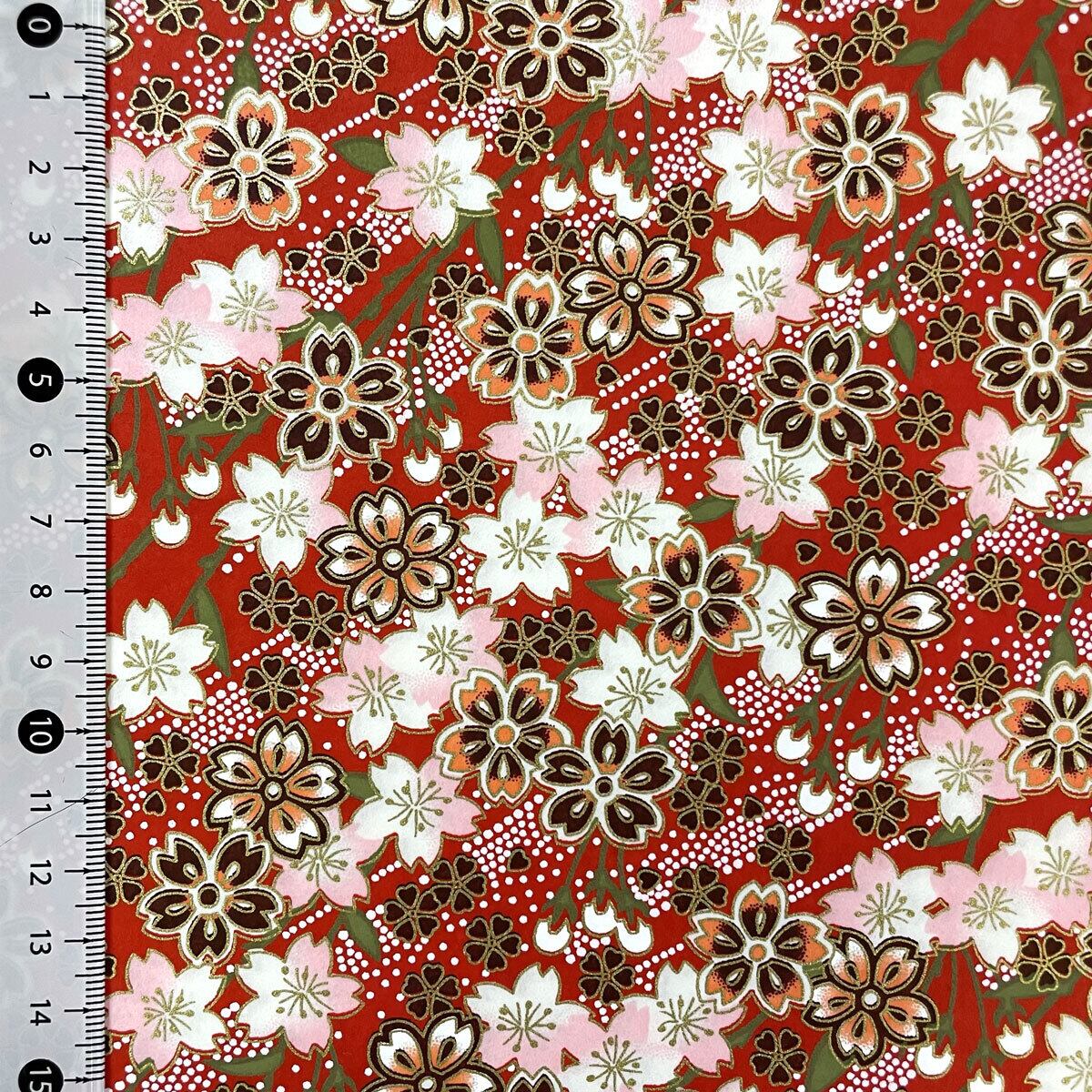 友禅和紙 華やかなしだれ桜とかわいい蕾 赤 大判 菊判 約63x93cm 千代紙 Yuzen Dyeing