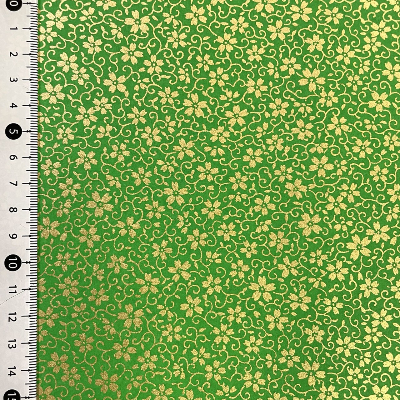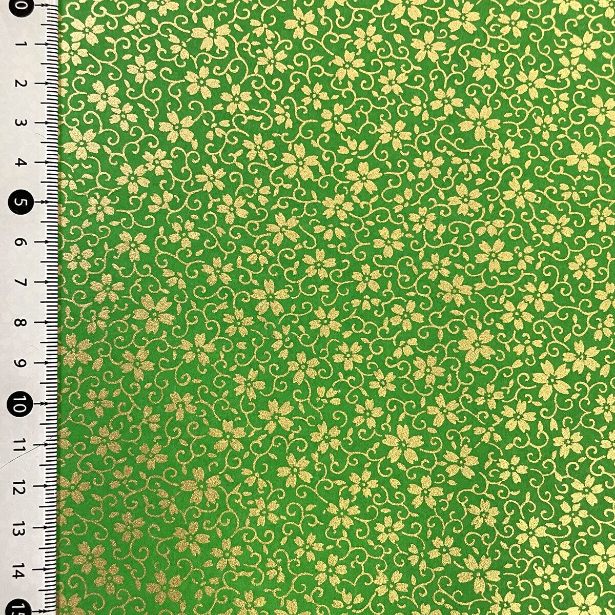 金色が華やかな加賀友禅 和紙 桜 唐草模様 緑地 大判 菊判 約63 x93cm