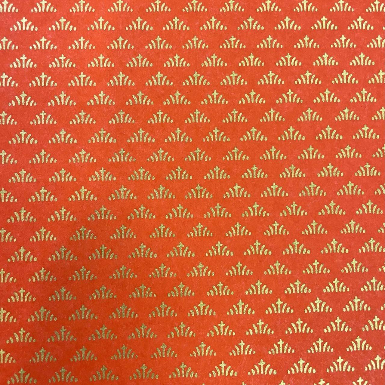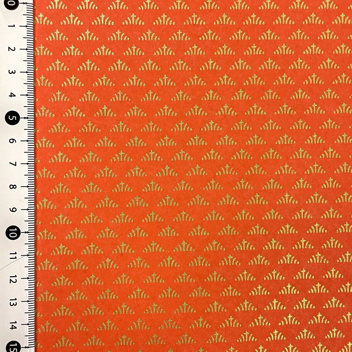 金色が華やかな加賀友禅 和紙 三角紋様 赤 朱赤 大判 菊判 約63 x93cm