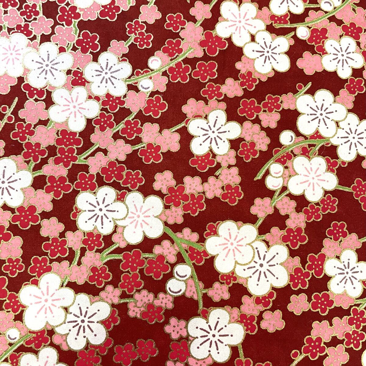 華やかな友禅和紙 紅梅 白梅 赤 緑 大判 菊判 約63x93cm 千代紙 Yuzen Dyeing