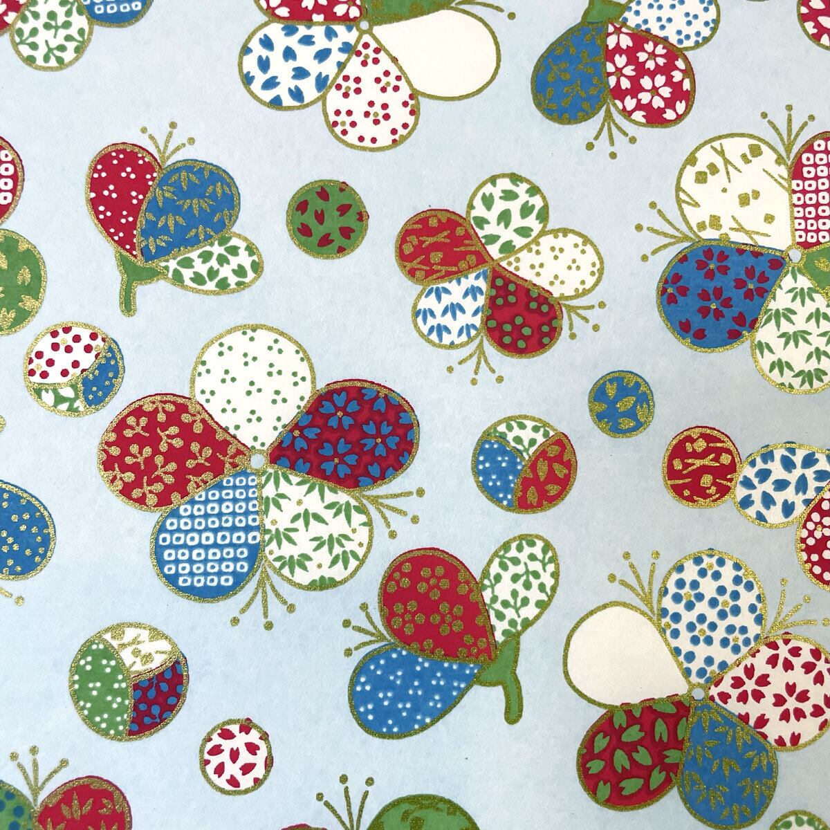 華やかな友禅和紙 かわいい梅の花に桜 小花 竹 水色 淡いブルー 大判 菊判 約63x93cm 千代紙 YUZEN dyeing