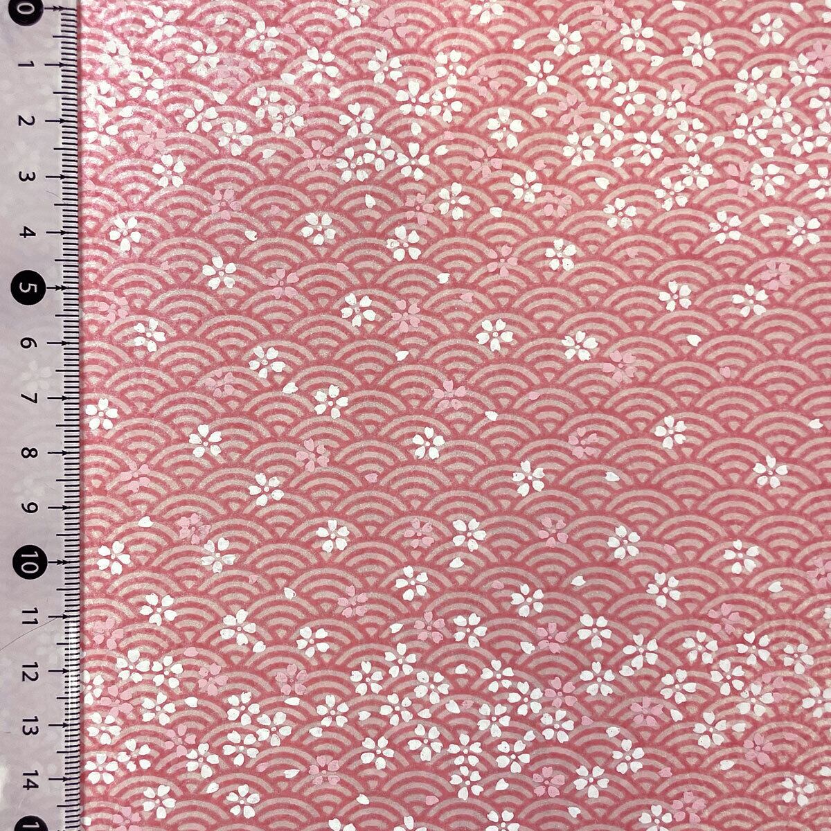 友禅和紙 小さな青海波に 白とピンクの小桜 小花 かわいい 桃色 大判 菊判 約63x93cm 千代紙 YUZEN dyeing