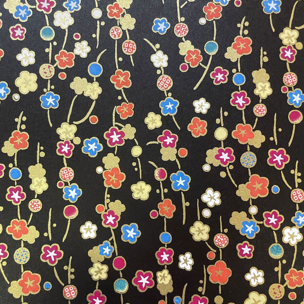 友禅和紙 つるし飾り風 可愛い梅 しだれ梅 黒地 菊判 大判 約63x93cm