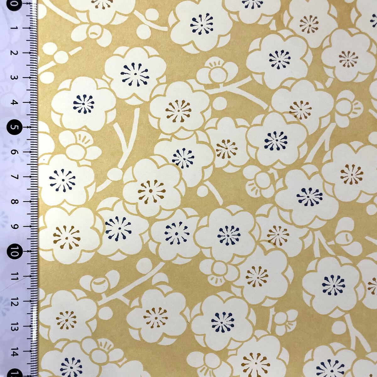 友禅紙 クリーム色地に白の梅 ベージュ 菊判 大判 約63x95cm 千代紙