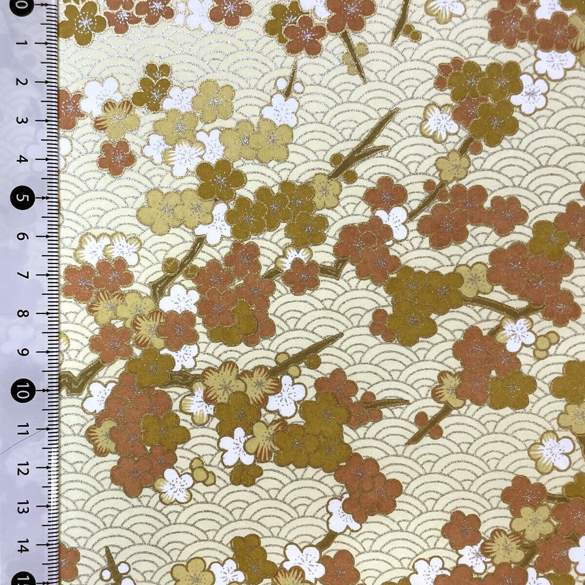 友禅和紙 華やか 青海波に梅 ベージュ 茶色 クリーム色 菊判 大判 約63x93cm 千 代紙