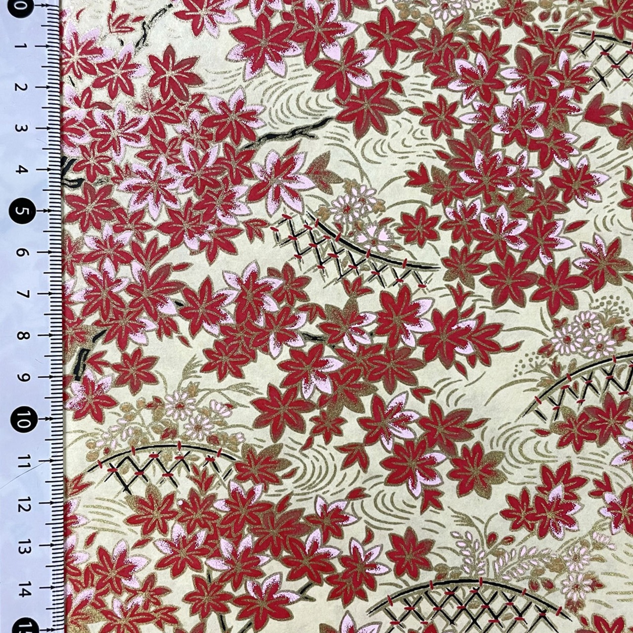 華やかな友禅和紙 紅葉 秋 もみじと水の流れ 紅赤 菊判 大判 約 63x93cm 千代紙 Yuzen Dyeing