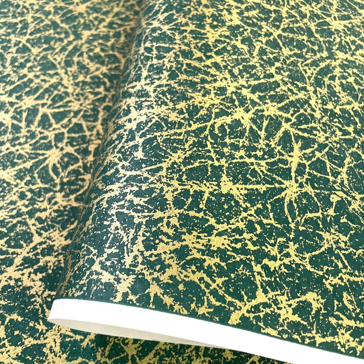 金色が華やかな加賀友禅 和紙 氷割れ紋様 ひわれ模様 緑地 菊判 大判 約63x93cm KAGA YUZEN Dyeing