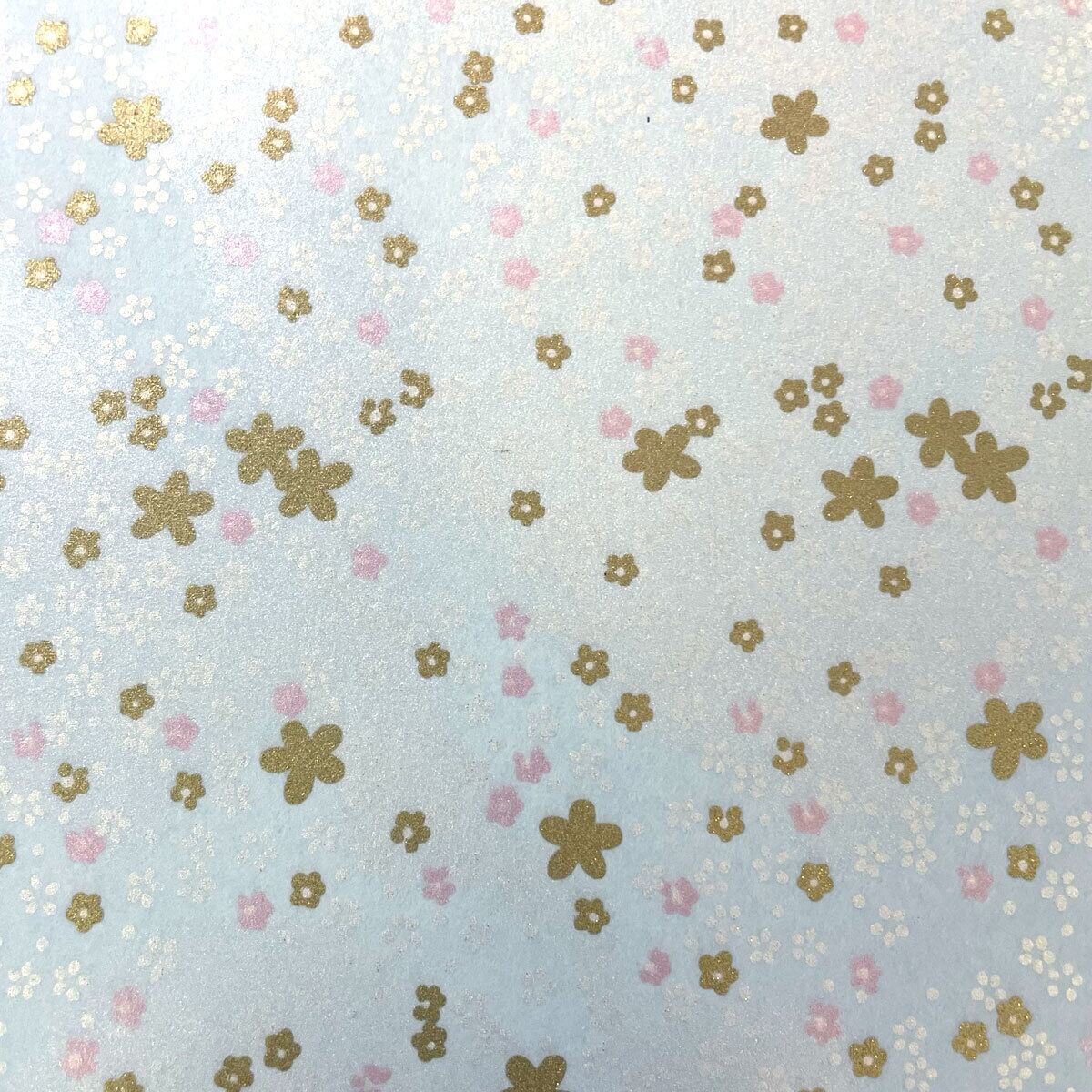 友禅紙 パステルブルーに小花 パール 可愛い 菊判 大判 約63x95㎝ YUZEN dyeing
