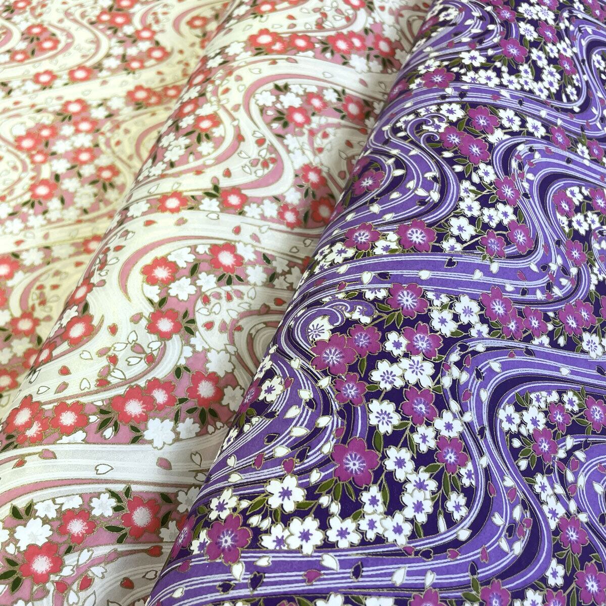 華やかな友禅紙 豪華 水の流れに桜 紫 ピンク 大判 約63x95㎝ YUZEN dyeing