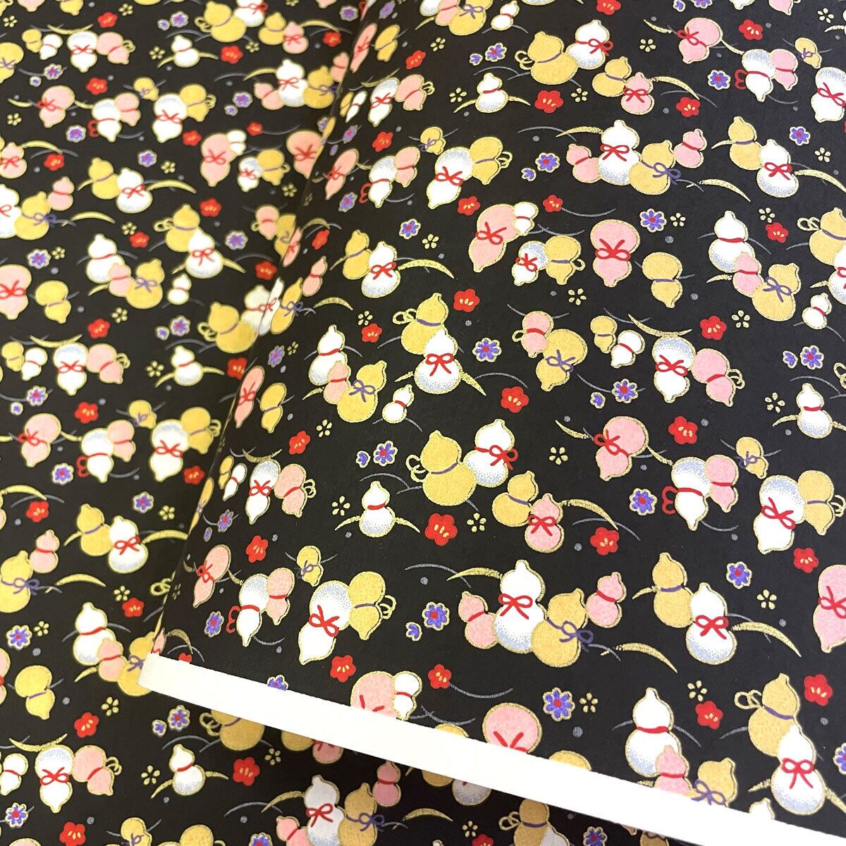 友禅和紙 可愛い瓢箪 ひょうたん 黒 菊判 大判 約63x93cm Yuzen Dyeing