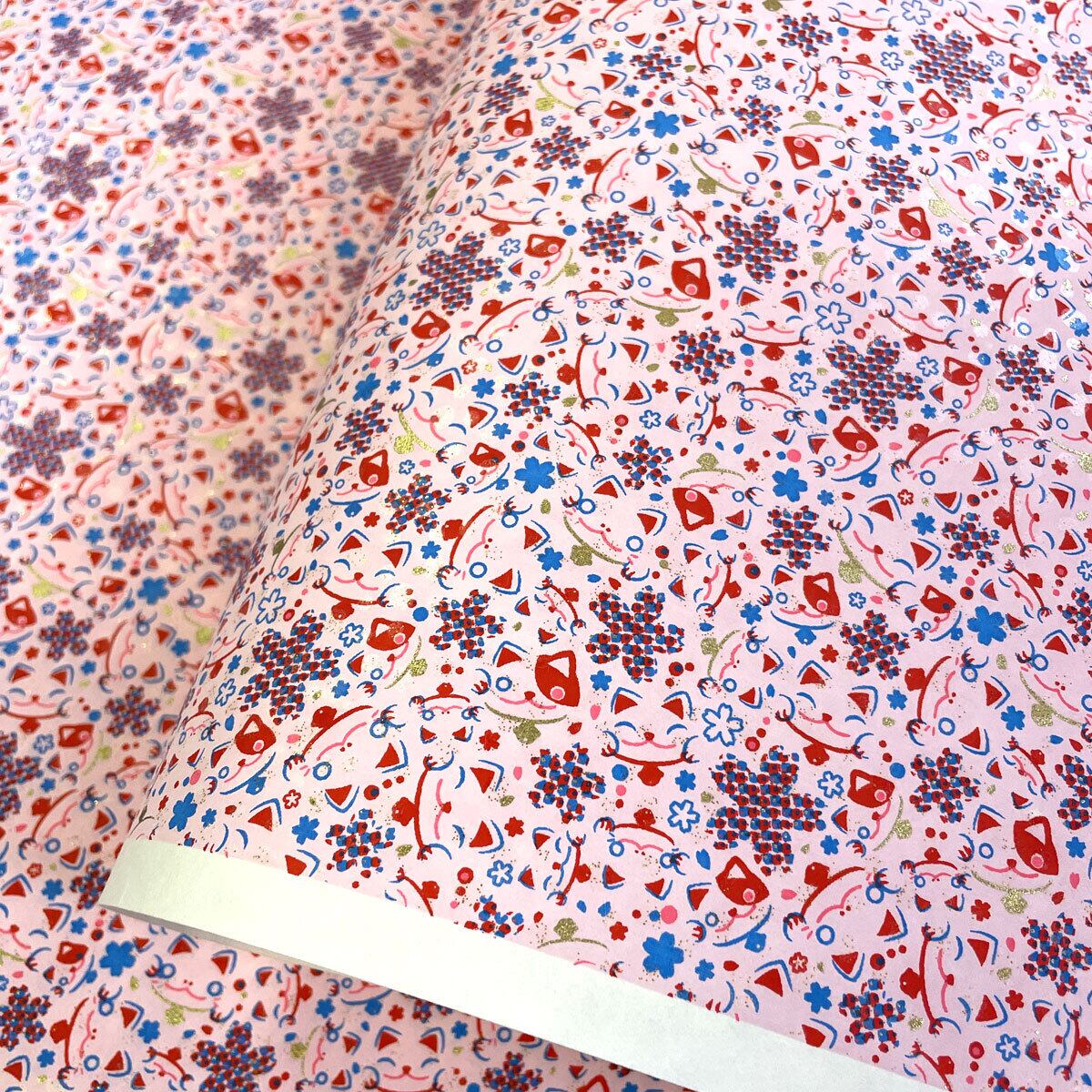 友禅和紙 可愛い隠れ猫と桜 ピンク 桃色 YUZEN dyeing 菊判 大判 約63x95㎝ 千代紙