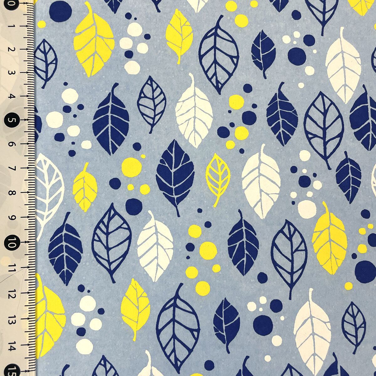 北欧風 友禅和紙 リーフ柄 葉っぱ柄 水色 ブルー YUZEN dyeing 菊判 大判 約63x95㎝ 千代紙 79443217