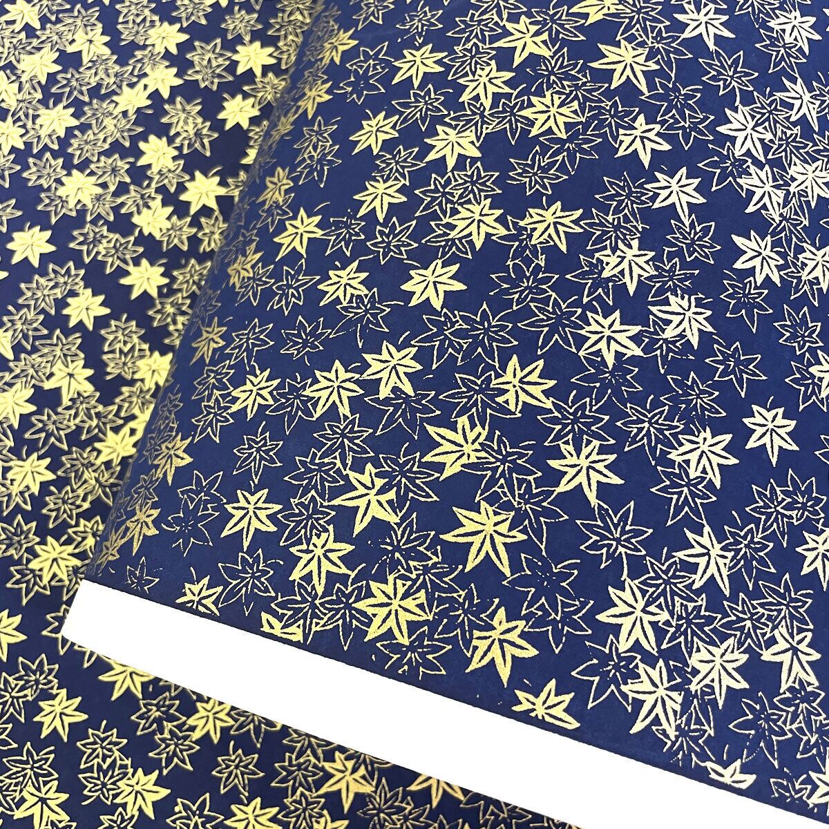 金色が華やかな加賀友禅 和紙 紅葉 青 紺 金 大判 約63x93cm Kaga Yuzen Dyeing