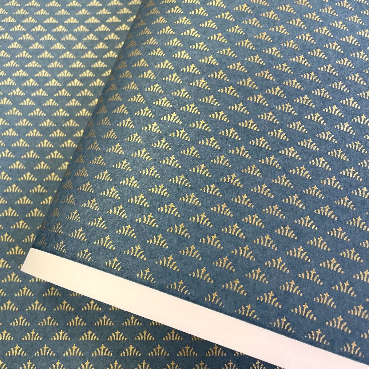 金色が華やかな加賀友禅 和紙 三角紋様 ブルーグレー 青 水色 大判 約63x 93cm Kaga Yuzen Dyeing