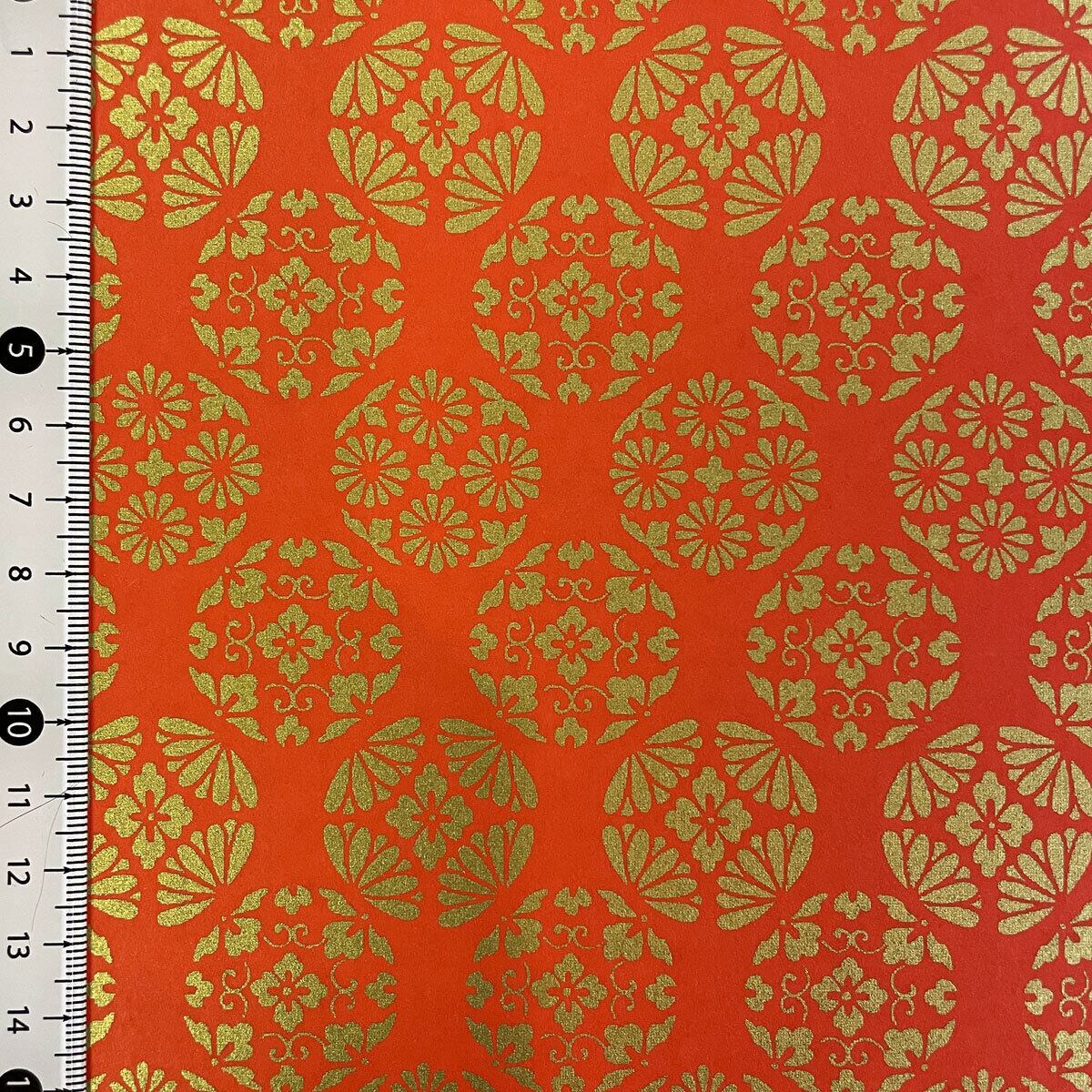 華やかな加賀友禅紙 和紙 丸紋様 赤 朱色 菊判 大判 約63x 93cm Kaga Yuzen Dyeing