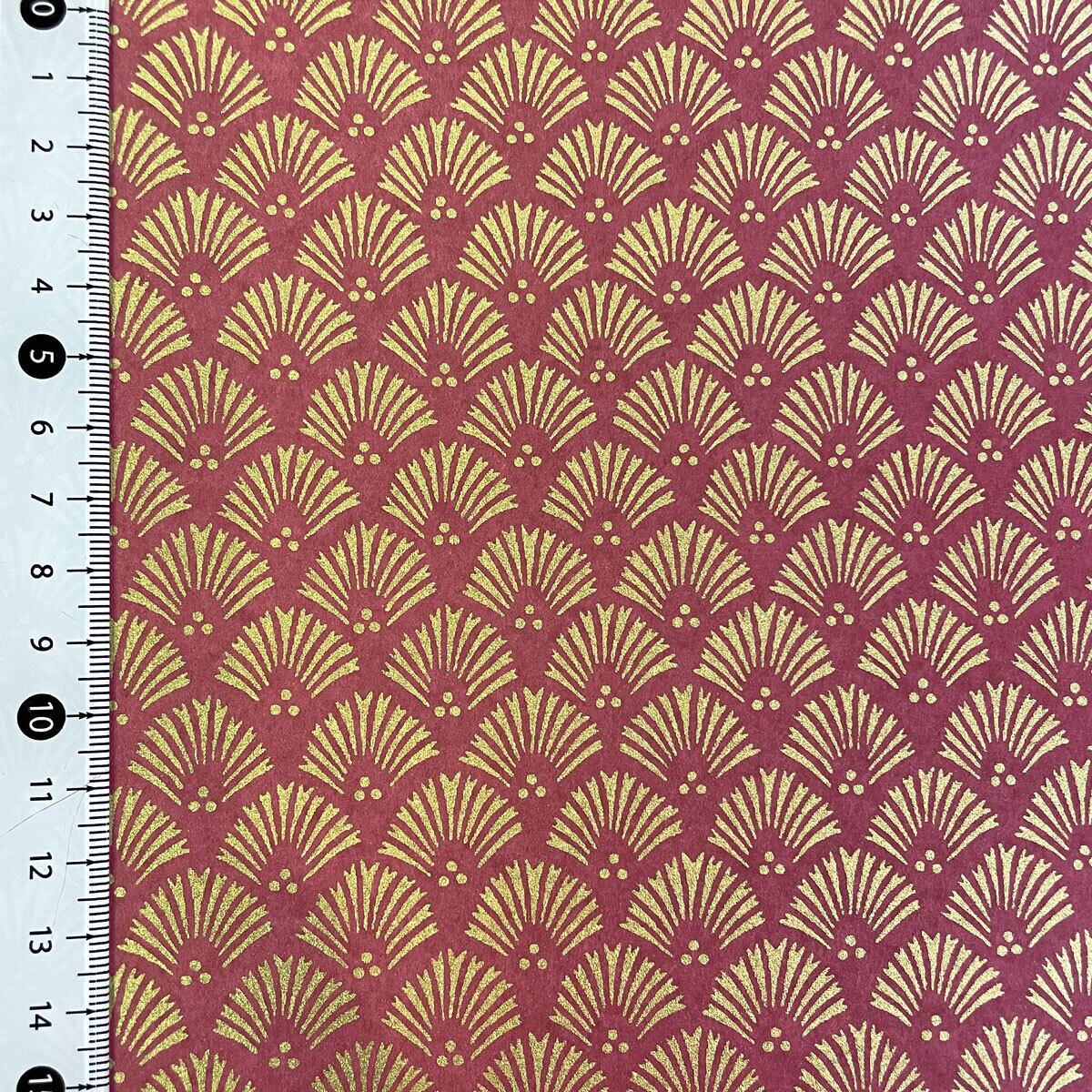 金色が華やかな加賀友禅 和紙 松葉紋様 浅蘇芳色 赤 菊判 大判 約63x 93cm Kaga Yuzen Dyeing