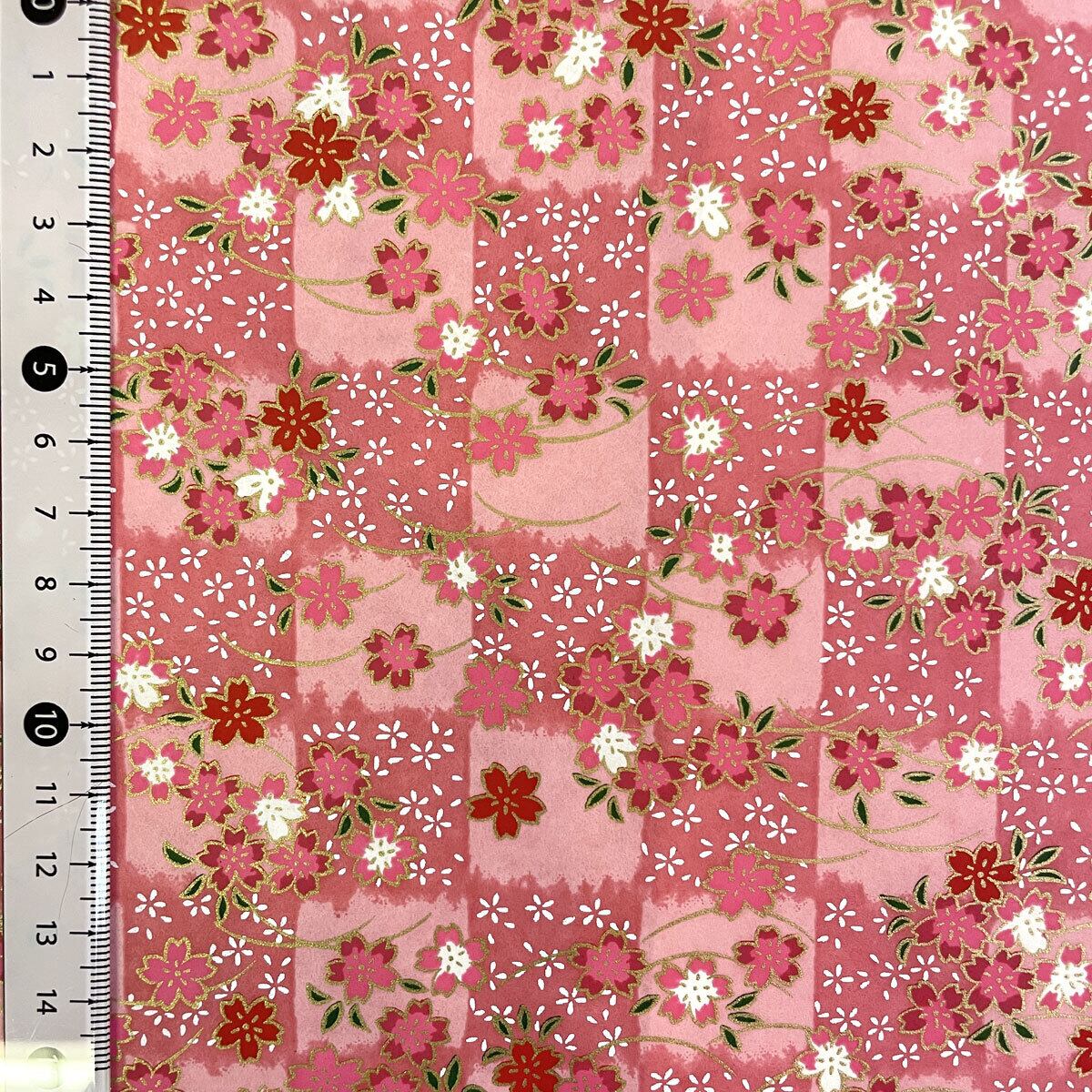 華やかな友禅和紙 桃色の市松風に赤 ピンクの桜 菊判 大判 約63 x93cm 千代紙 YUZEN dyeing