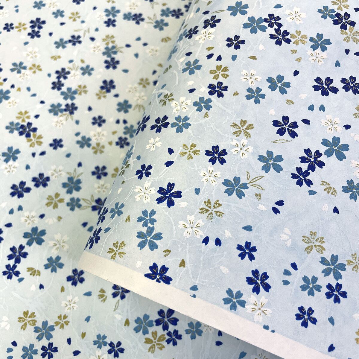 友禅和紙 爽やか 水色の氷割れ模様に青い桜 菊判 大判 約63 x93cm 千代紙 YUZEN dyeing