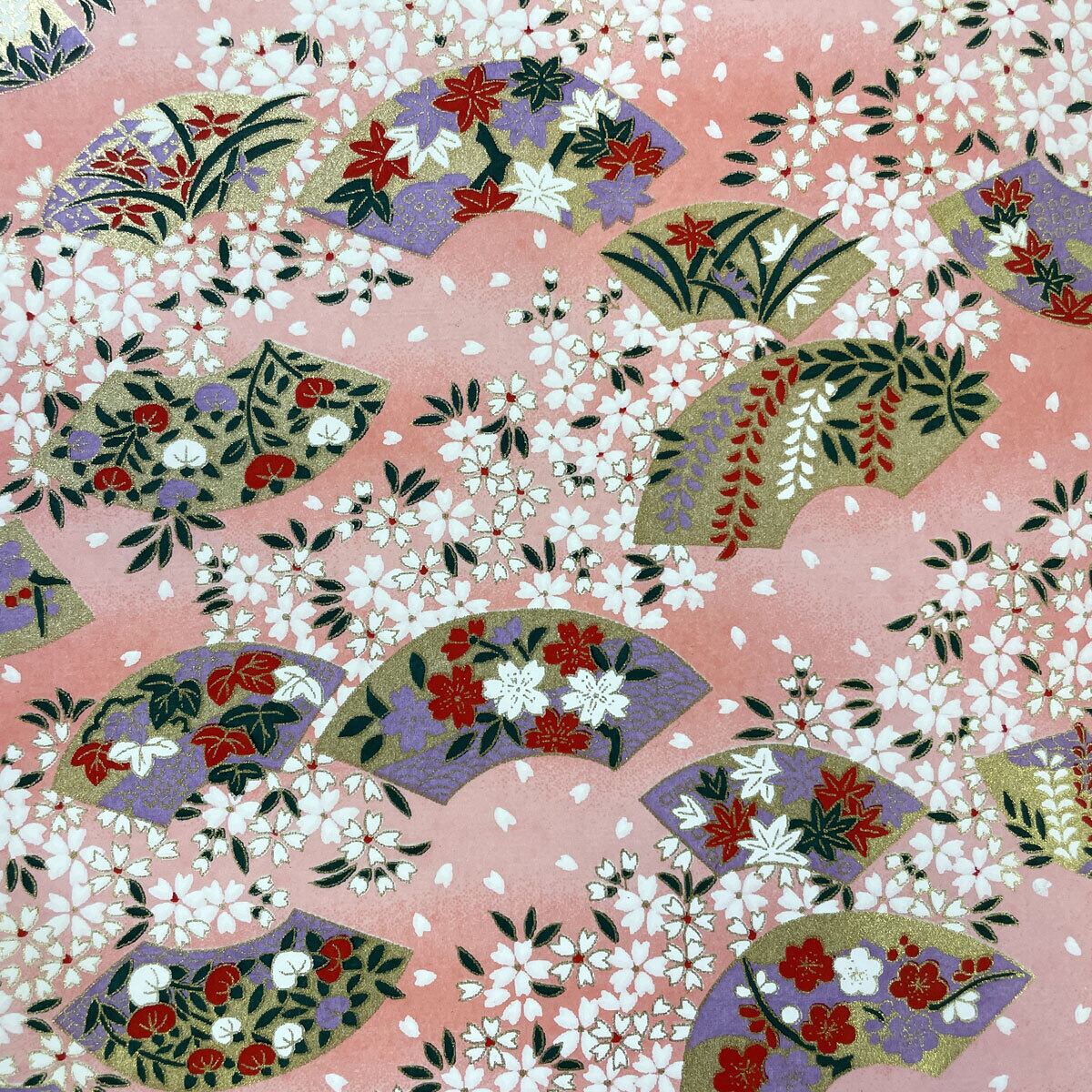 華やかな友禅紙 桜と扇 桃色 ピンク 小花 桜ちらし 菊判 大判 約63x93cm 千代紙 YUZEN dyeing