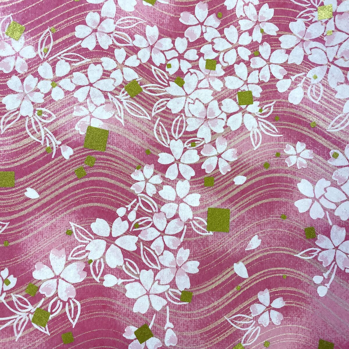 華やかな友禅和紙 さわやかな桜 桃色 ピンクに金の波 金箔チラシ 大判 菊判 約63x93cm 千代紙 Yuzen Dyeing 82473384