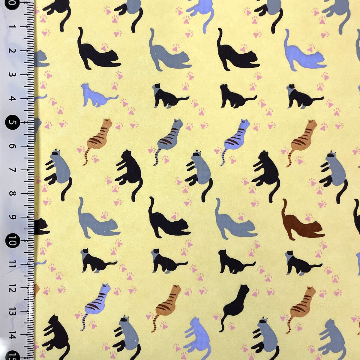 友禅紙 可愛い猫たち スモーキーイエロー 黄色 クリーム色 くすみカラー おしゃれ 菊判 大判 約63x95㎝ 千代紙